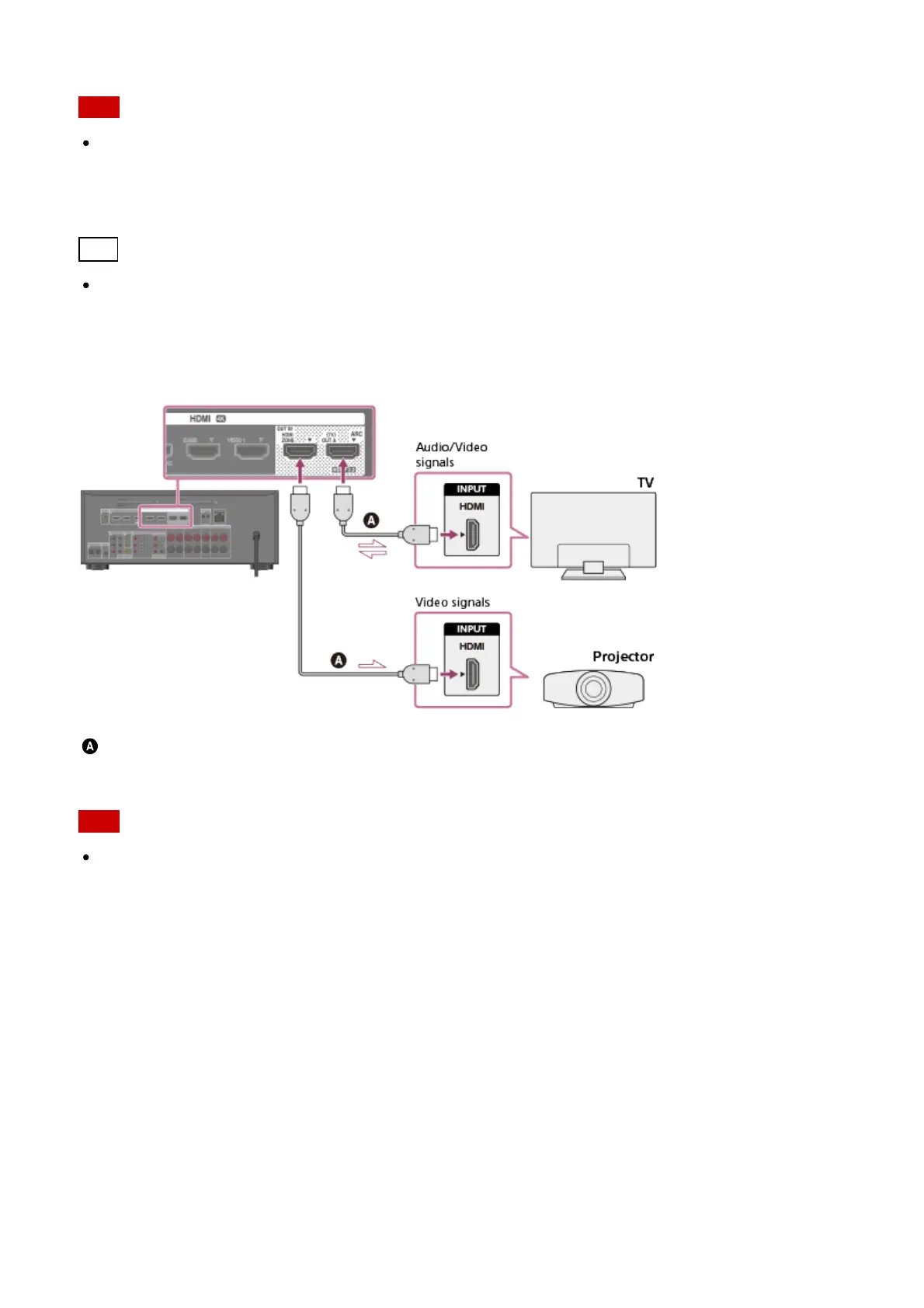 For this connection, set [HDMI Out B Mode] in the HDMI Settings menu to [Main].