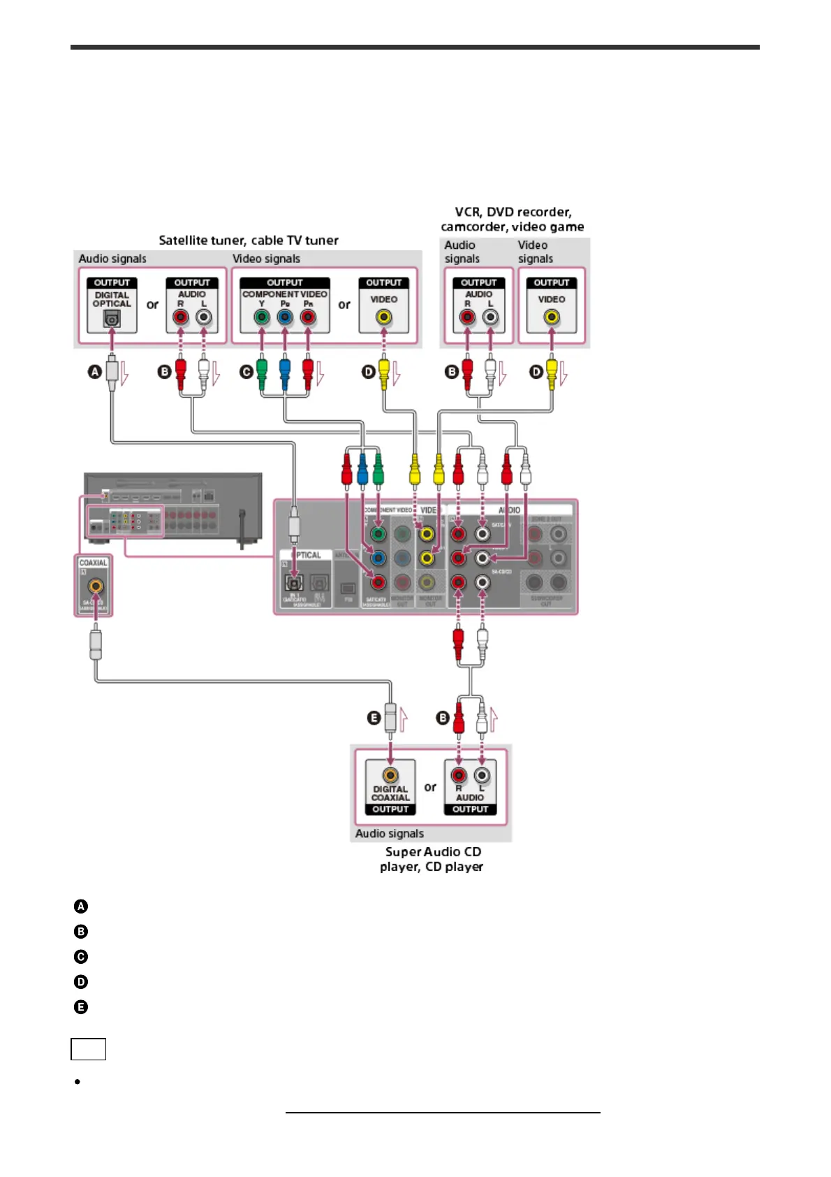 Connect devices to the receiver as illustrated below.