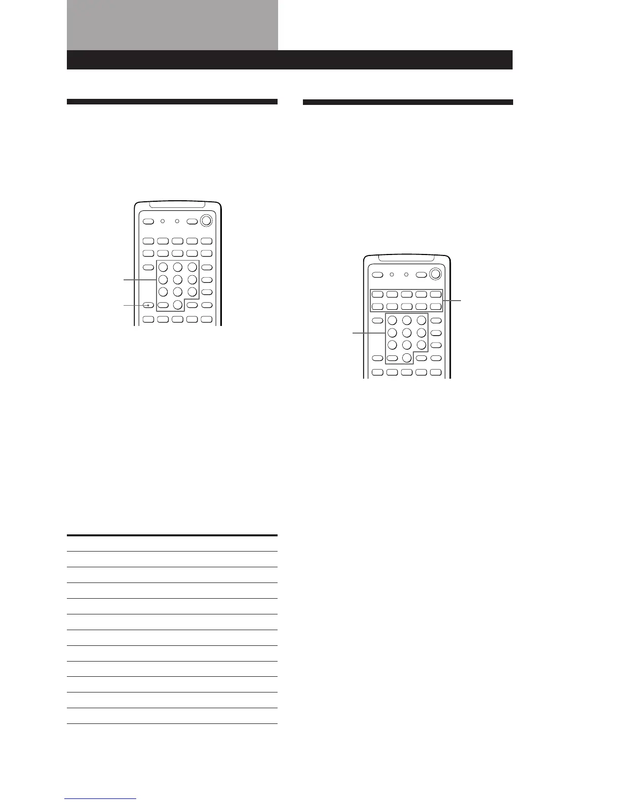 For the numeric buttons, see the table in