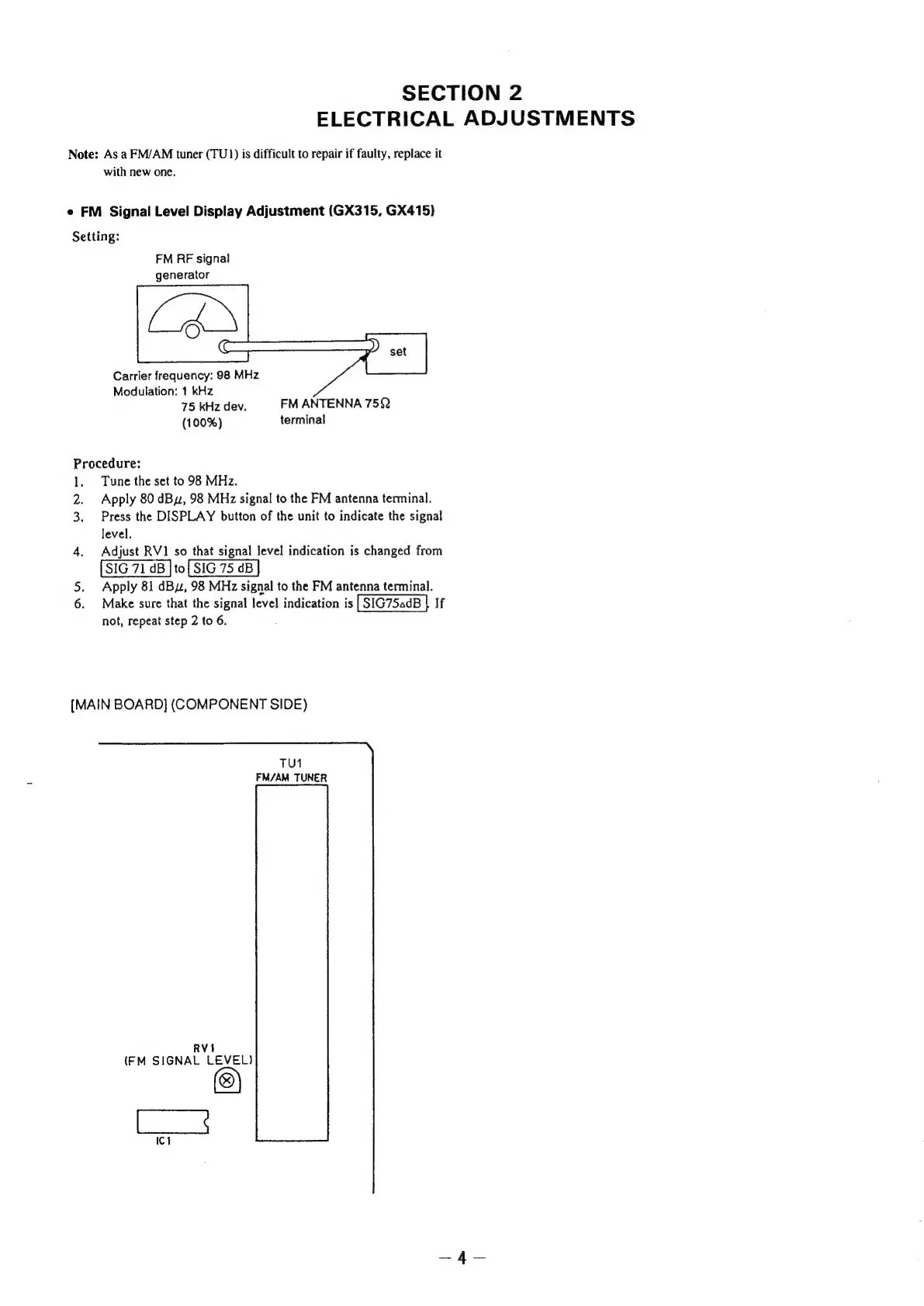 Sony STR-GX415 - Electrical Adjustment Procedures; FM Signal Level Display Adjustment