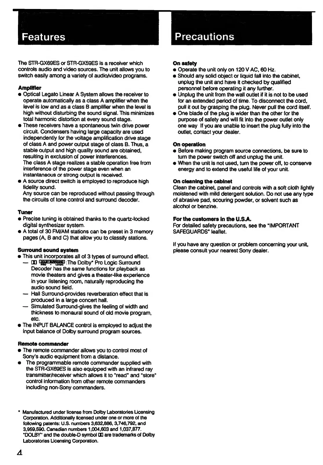 Sony STR-GX69ES - Features Overview; Amplifier Technology; Tuner System; Surround Sound System