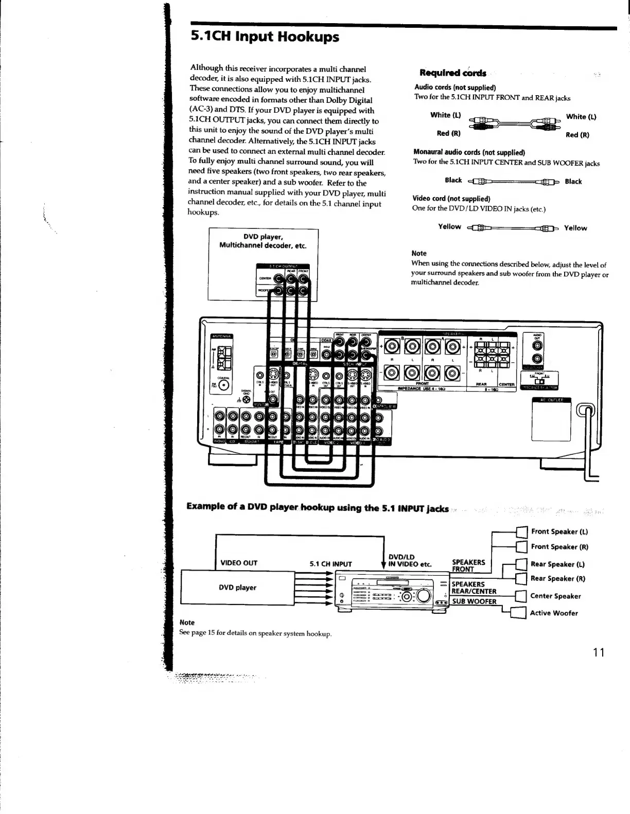 Sony STR-SE591 - 5.1 CH Input Hookups