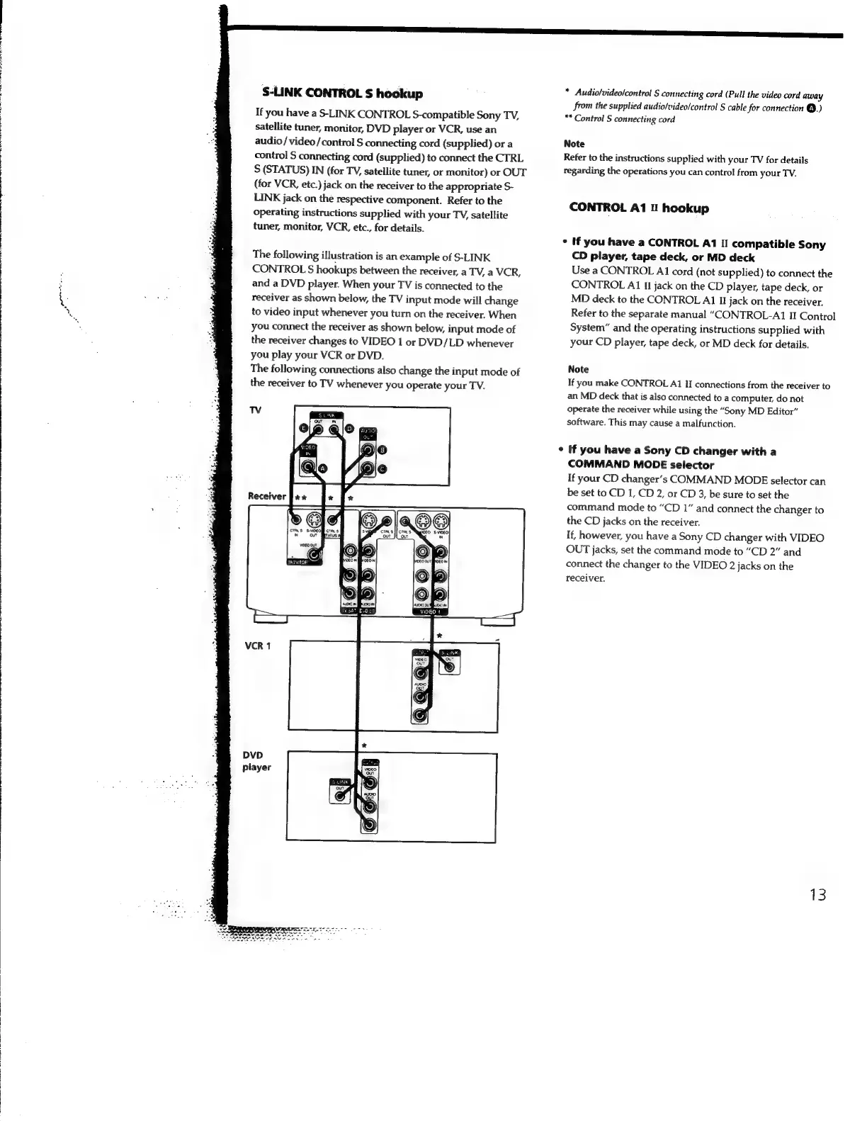 Sony STR-SE591 - S-LINK CONTROL S hookup; CONTROL A1 II hookup