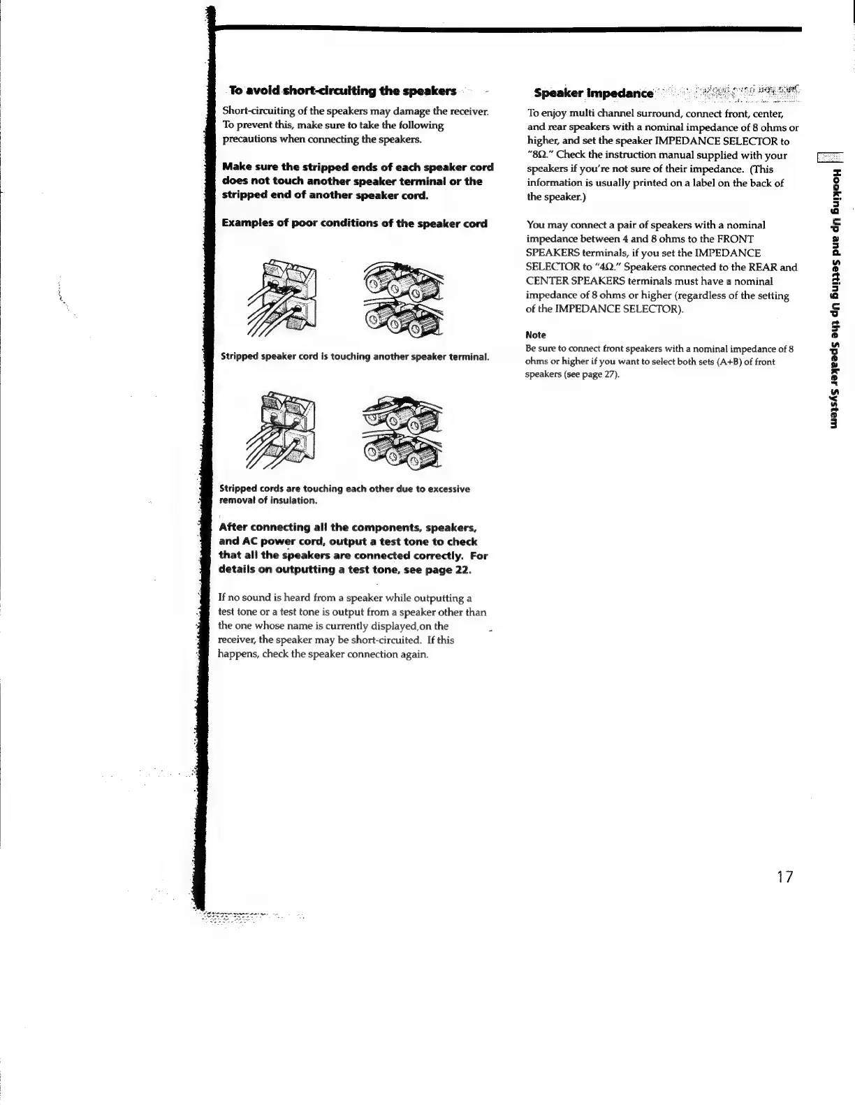 Sony STR-SE591 - To avoid short-circuiting the speakers; Speaker Impedance