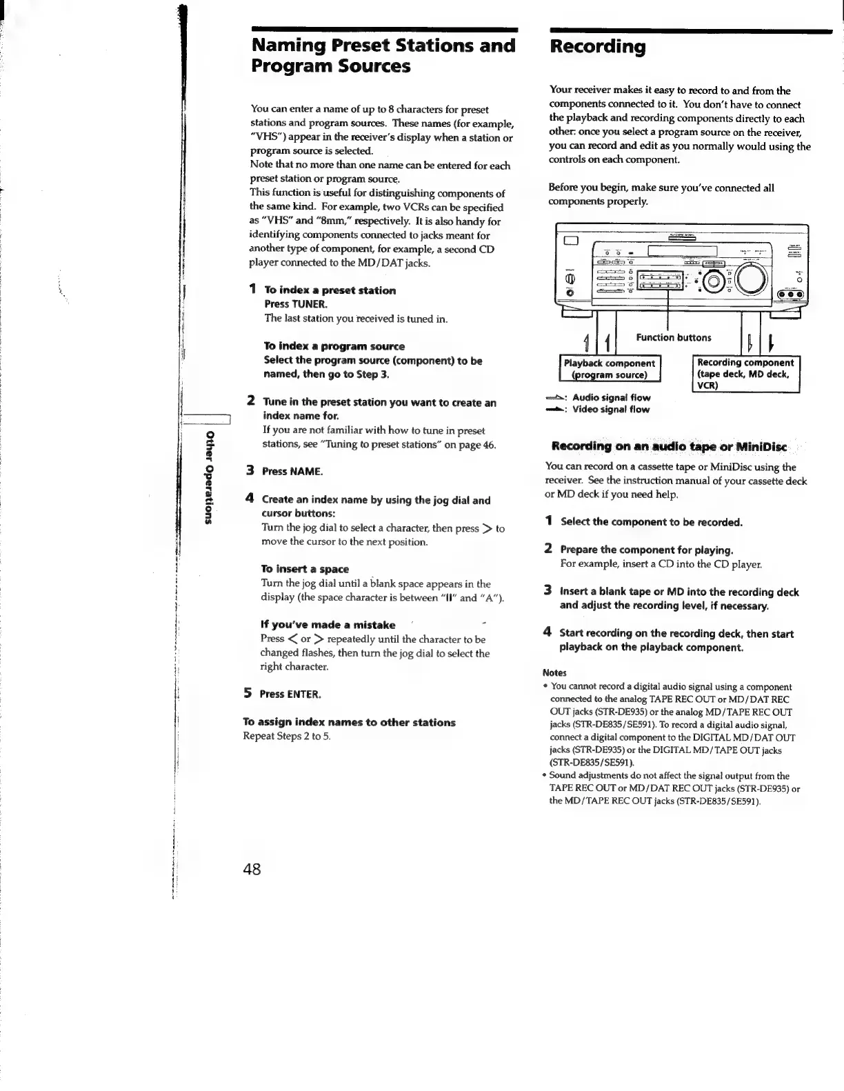Sony STR-SE591 - Naming Preset Stations and Program Sources; Recording