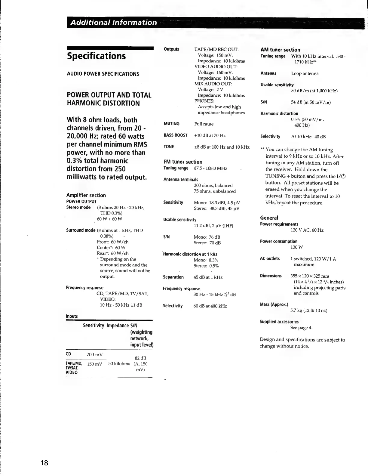 Sony STR-V220 - Specifications