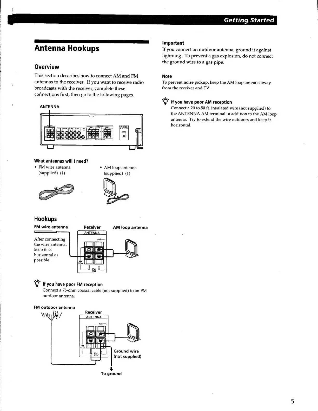 Sony STR-V220 - Getting Started; Antenna Hookups