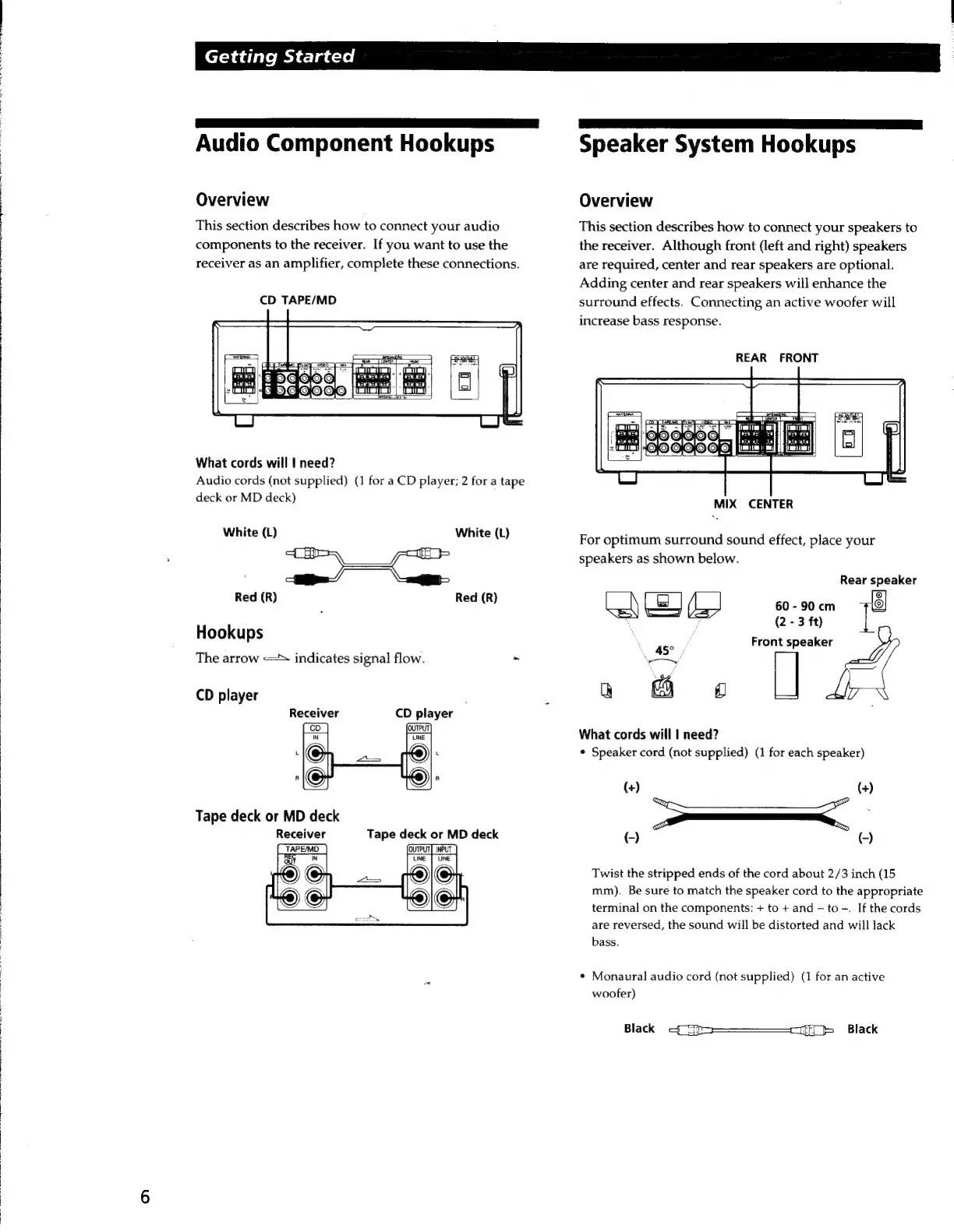 Sony STR-V220 - Audio Component Hookups; Speaker System Hookups
