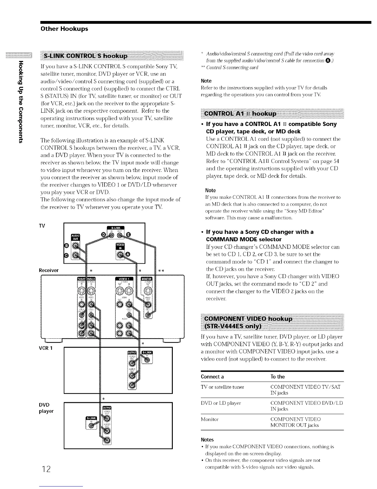 CONTROL S hookups between the receiver, a TV, a VCR,