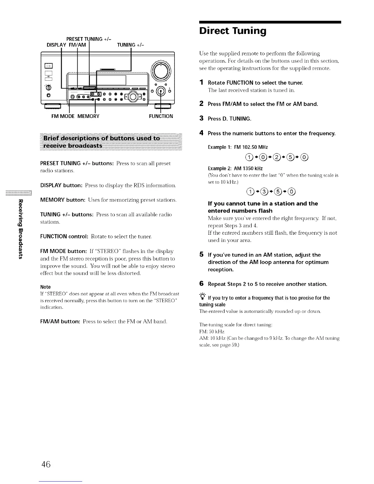 and tile FM stereo reception is poor; press this button to