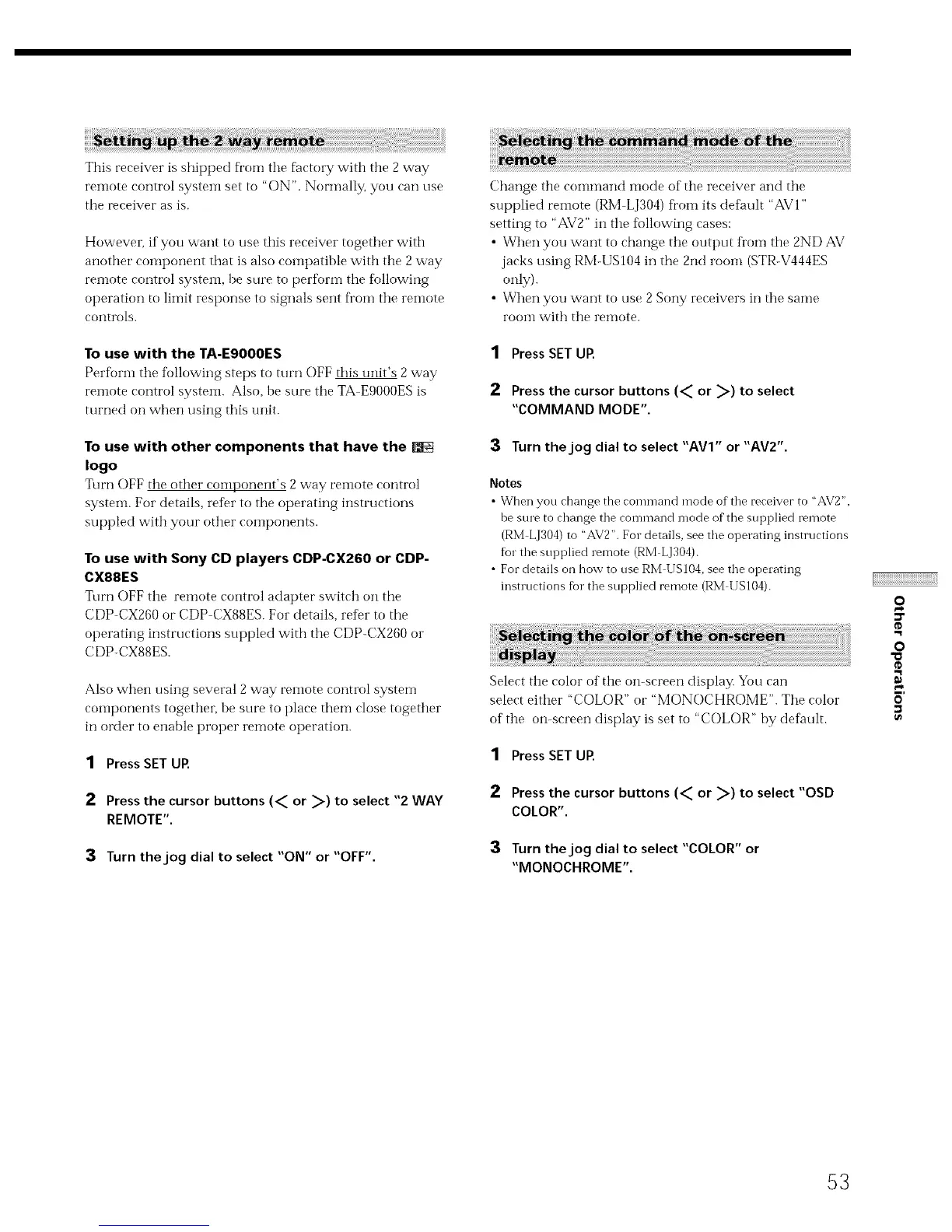 • When you change the command mode of the receiver to "AV2",