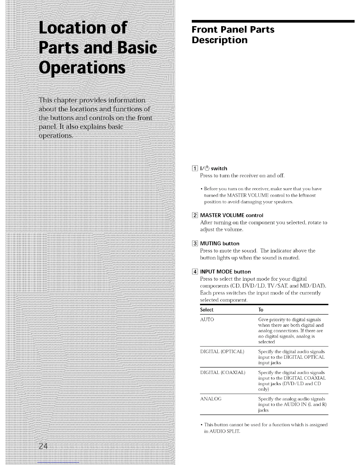 DIGITAL (COAXIAL) Specify the digital audio signals