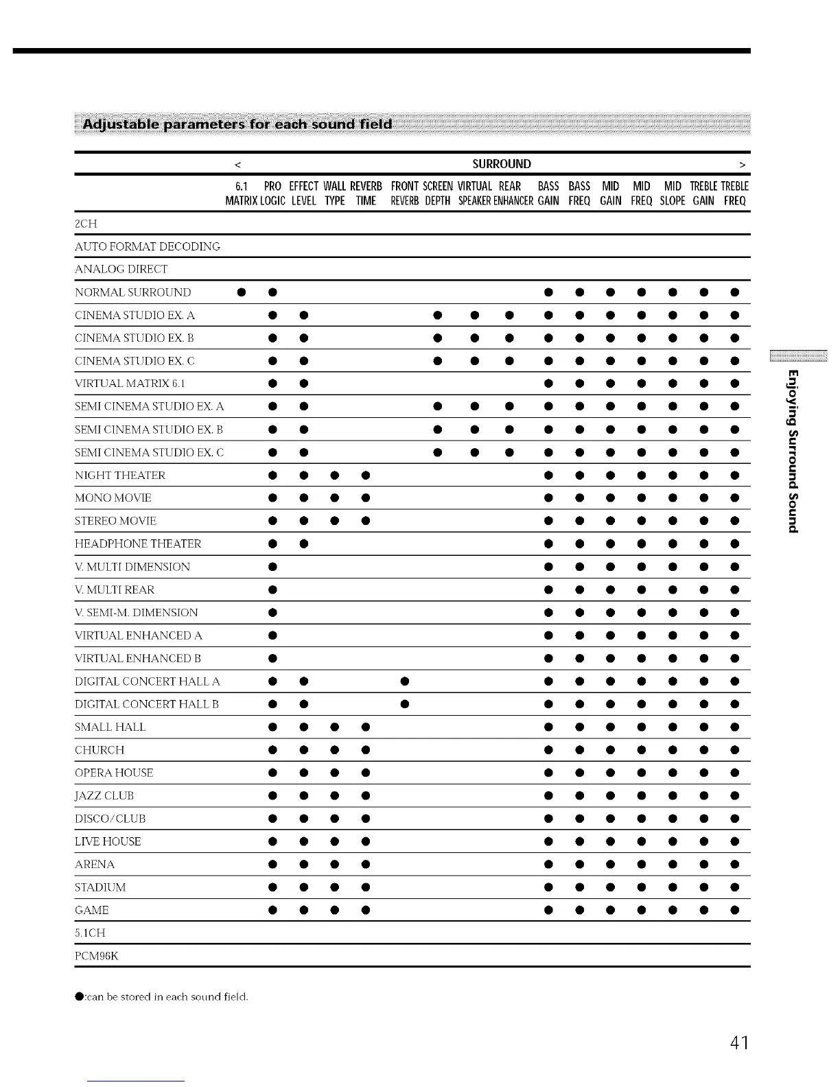 MATRIXLOGICLEVELTYPE TIME REVERBDEPTHSPEAKERENHANCERGAIN FREQ GAIN FREQ SLOPEGAIN FREQ