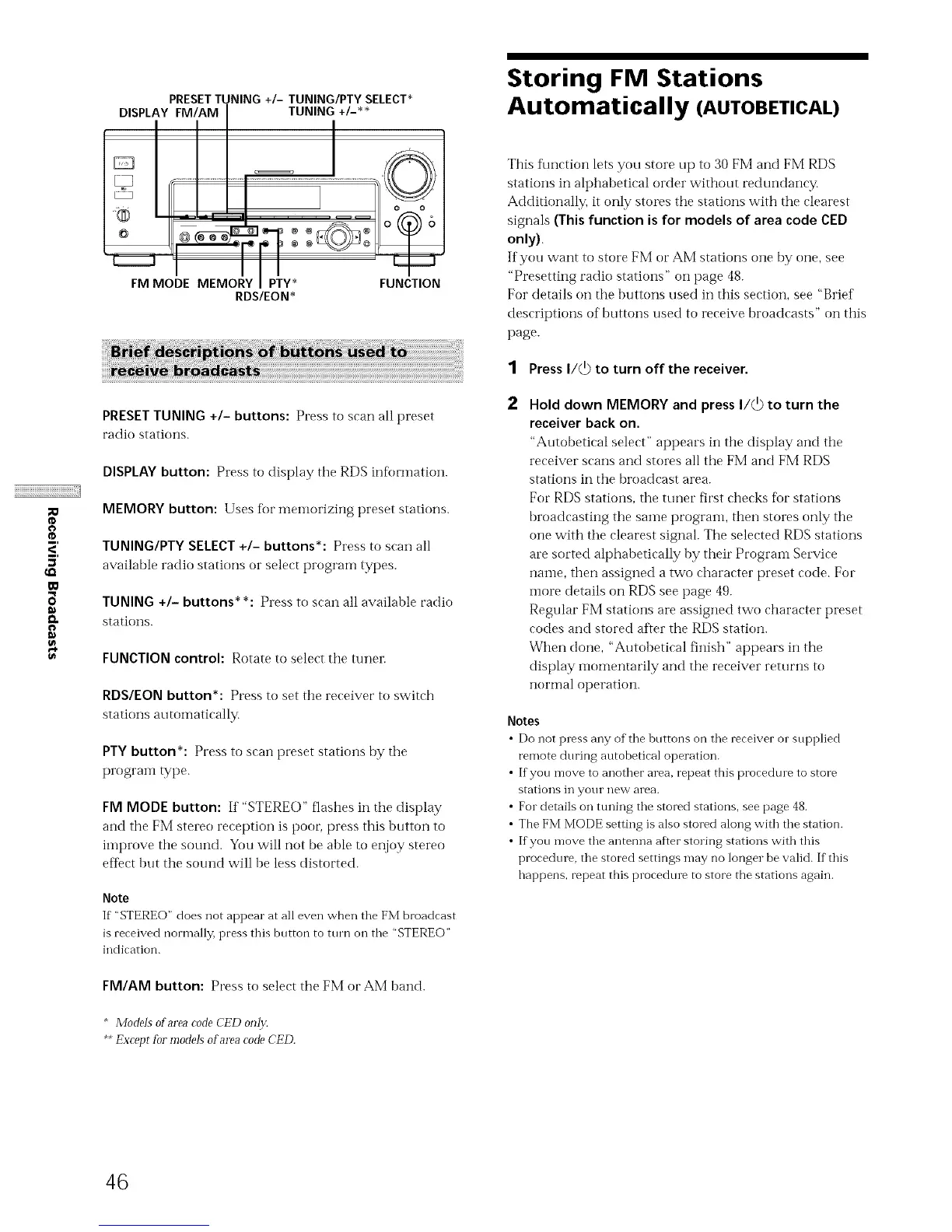 • For details on tuning the stored stations, see page 48.