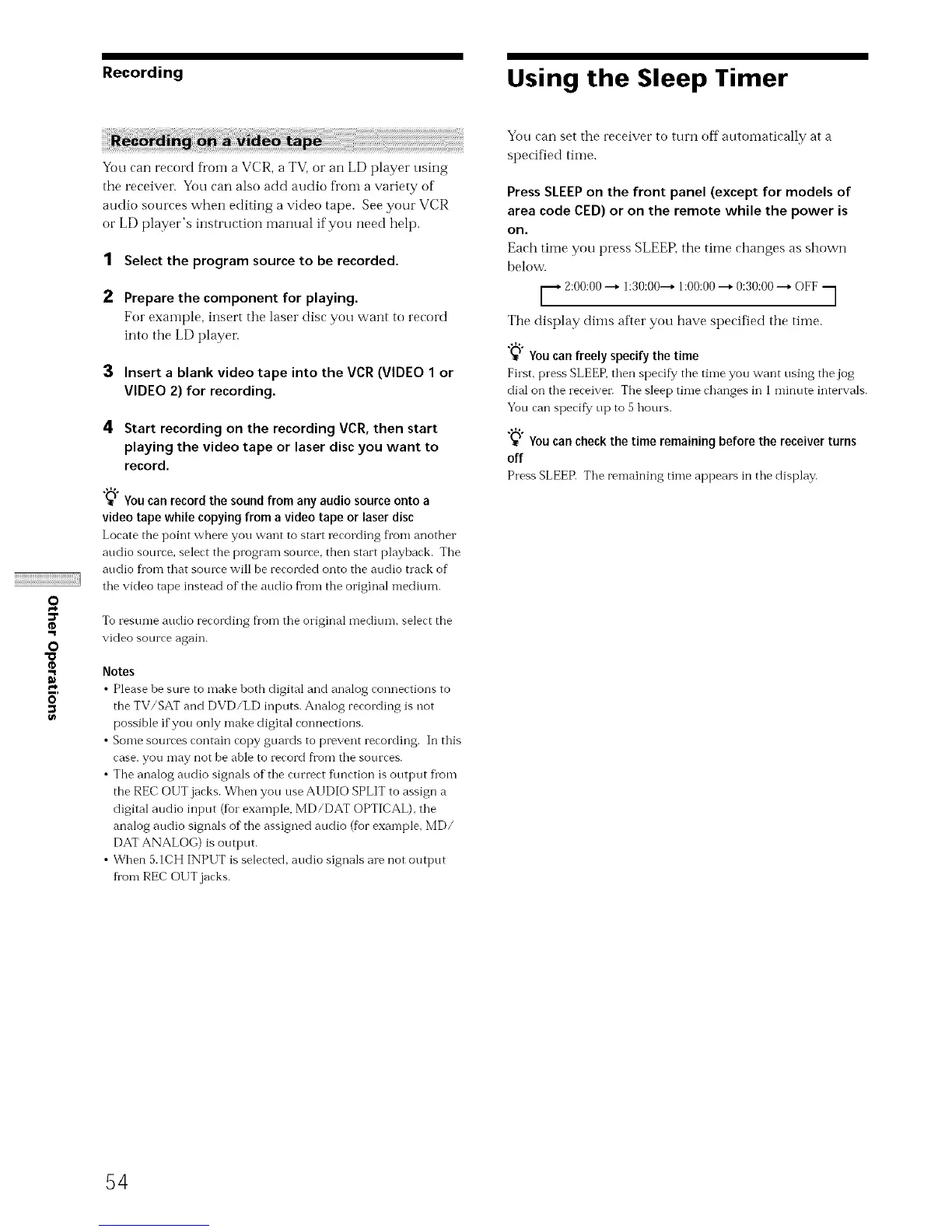 Recording Using the Sleep Timer