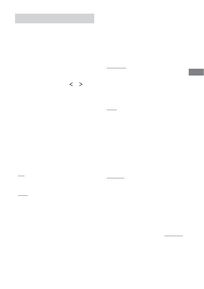 For details on each setup items, see pages 19, 43–45