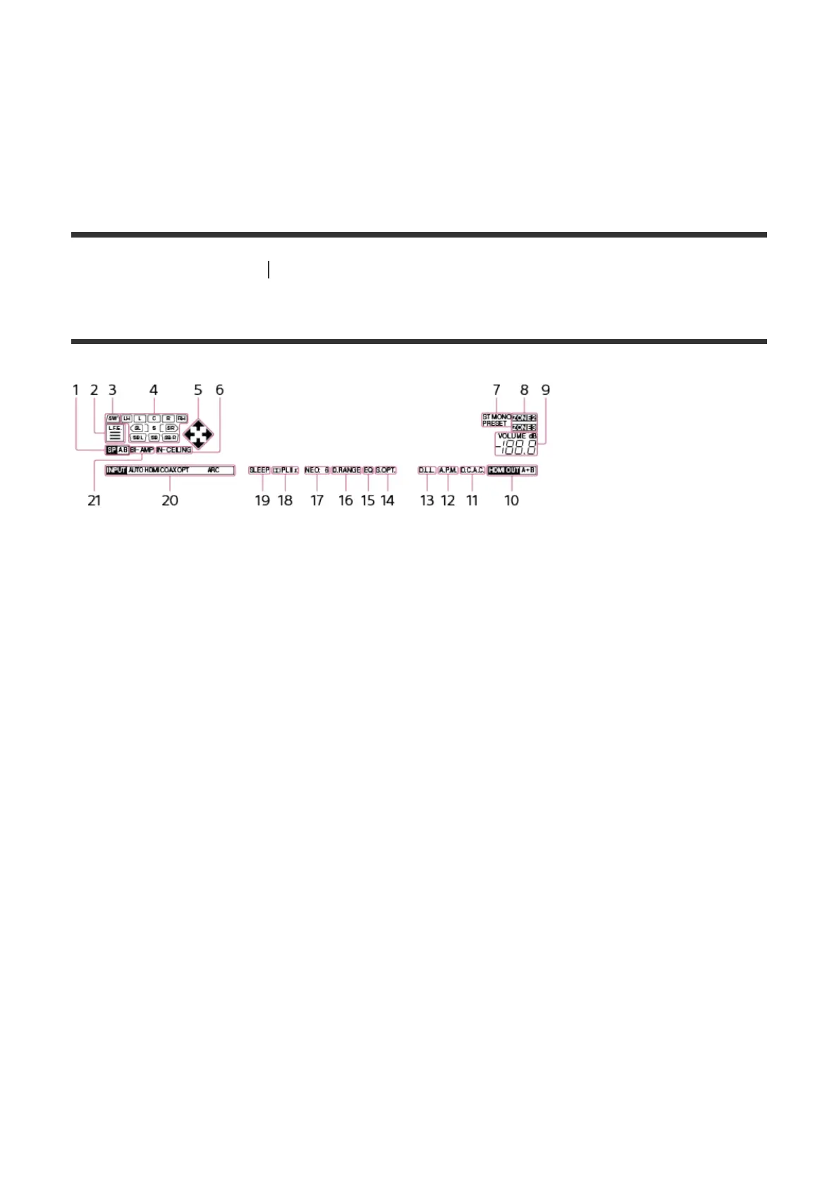 Lights up when input signals being played back contain an L.F.E. (Low Frequency