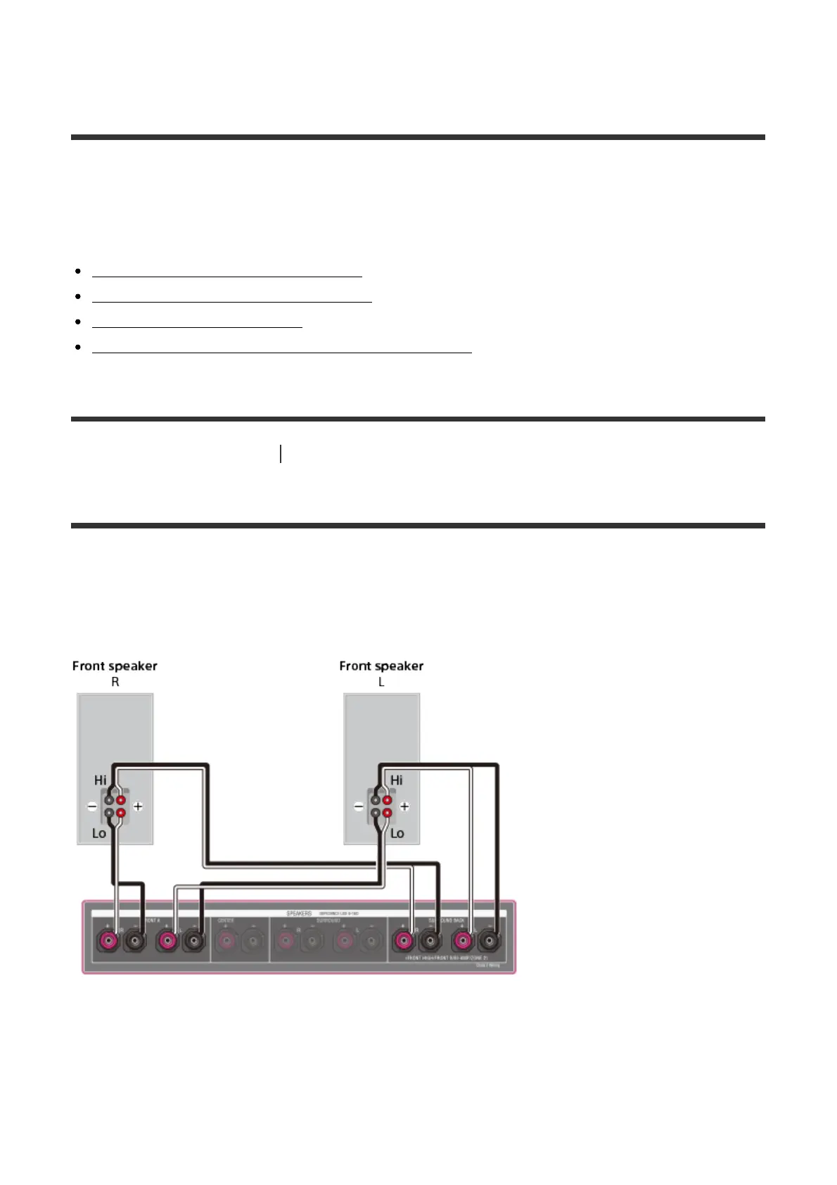 terminals, and connect the jacks on the Hi (or Lo) side of the front speakers to the