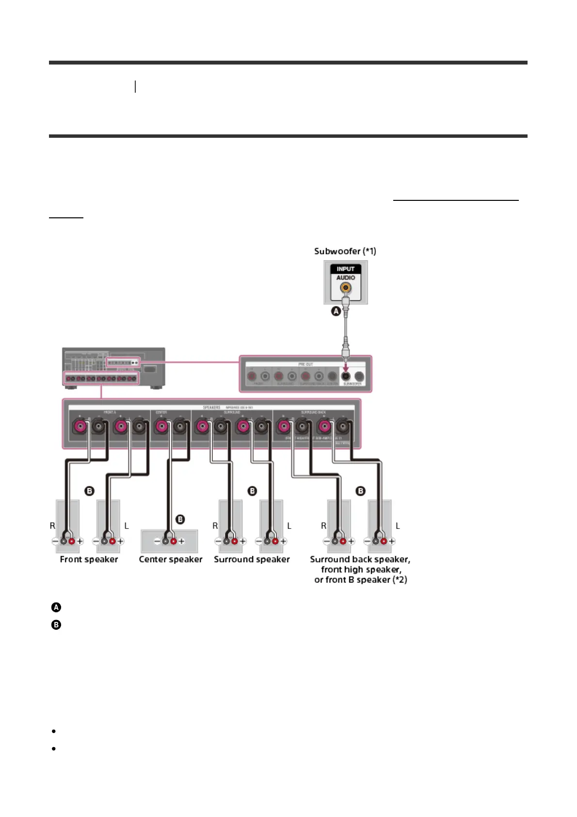 Notes on connections to the SPEAKERS SURROUND BACK/FRONT HIGH/FRONT B/BI-