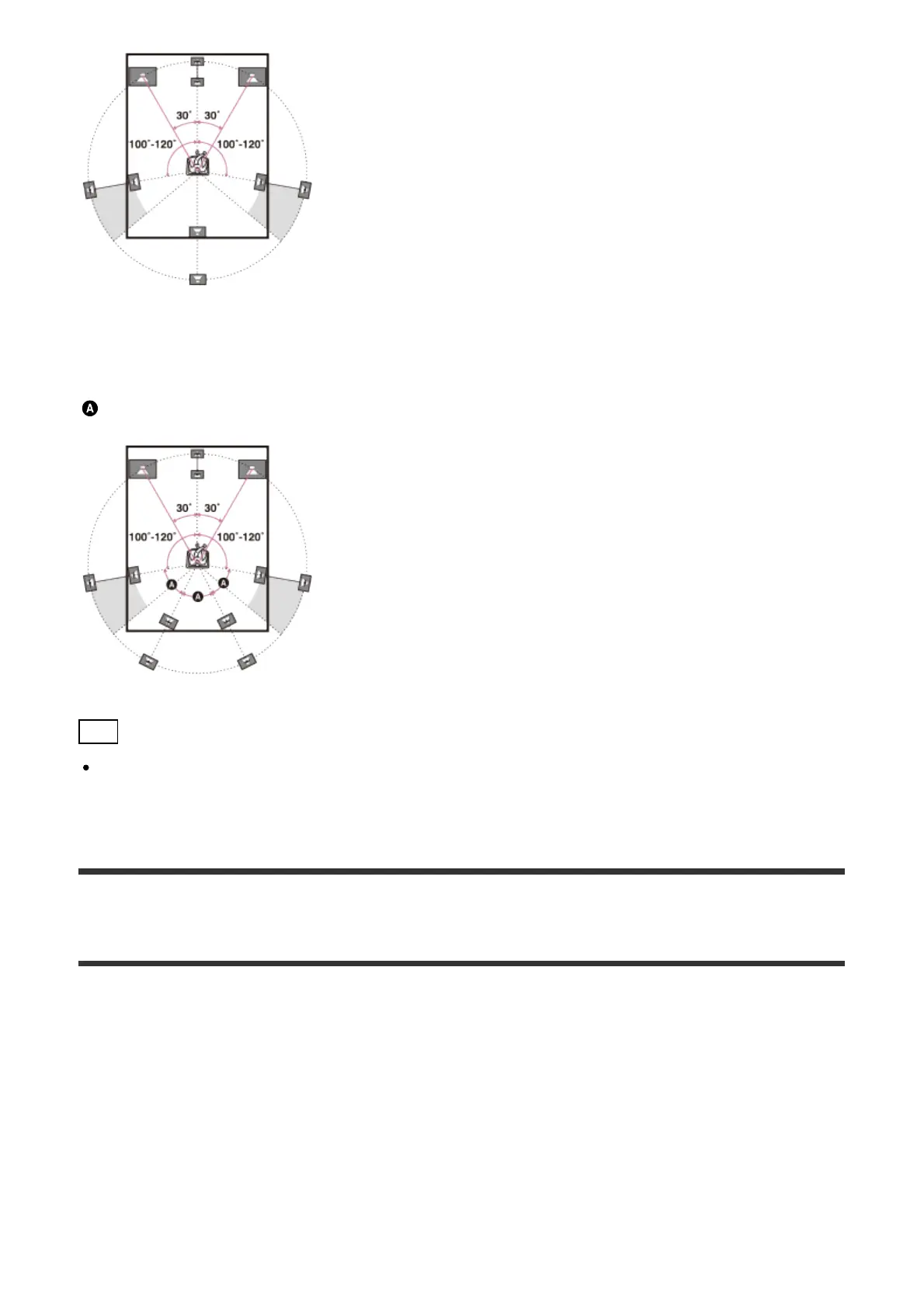 Place the surround back speakers as shown in the illustration below. The angles shown by