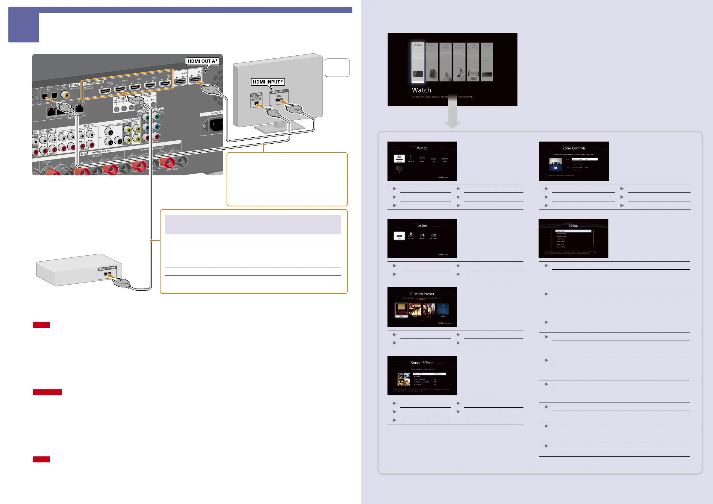 • For details on high-bandwidth video formats and other notes, refer to the Help Guide.