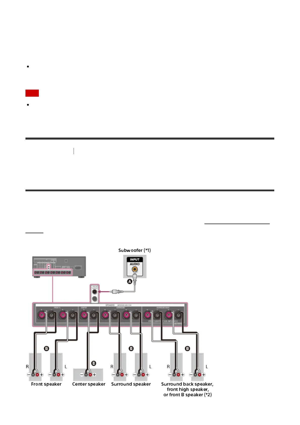 For details on how to connect speaker cables to the receiver, see “How to connect speaker