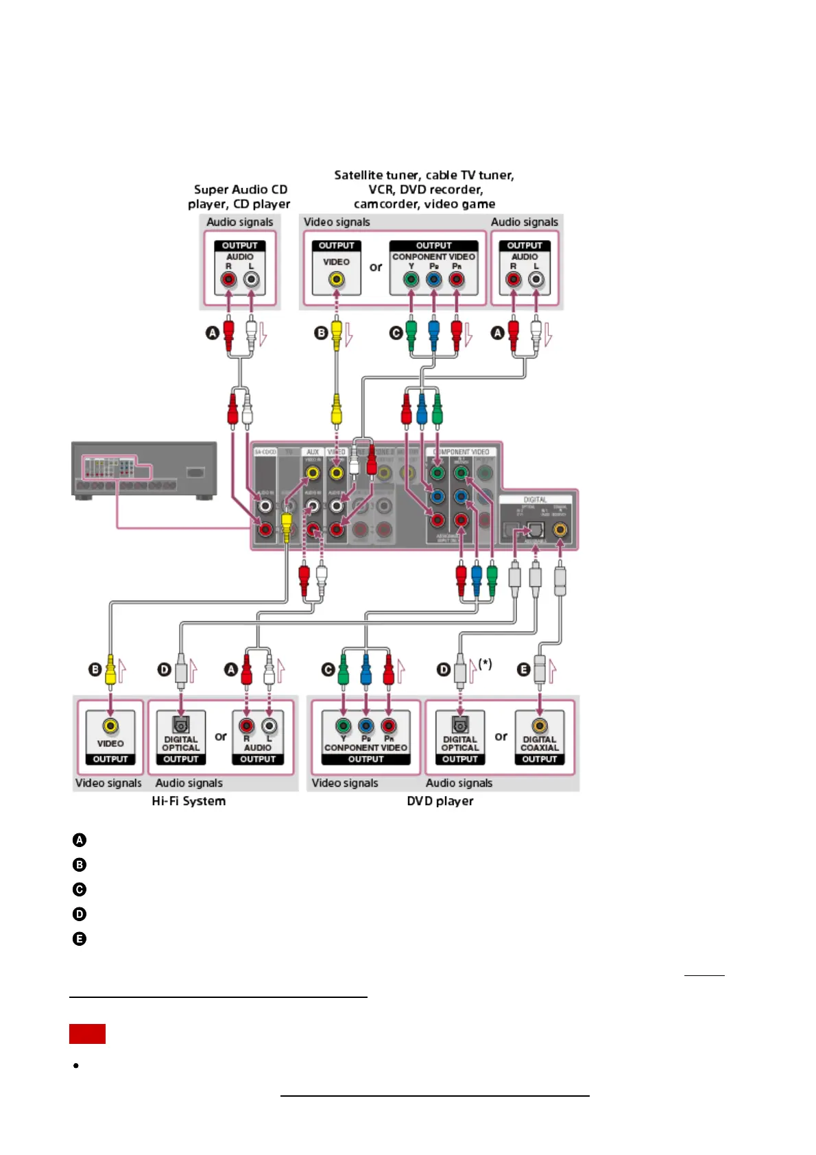 Connect devices to the receiver as illustrated below.