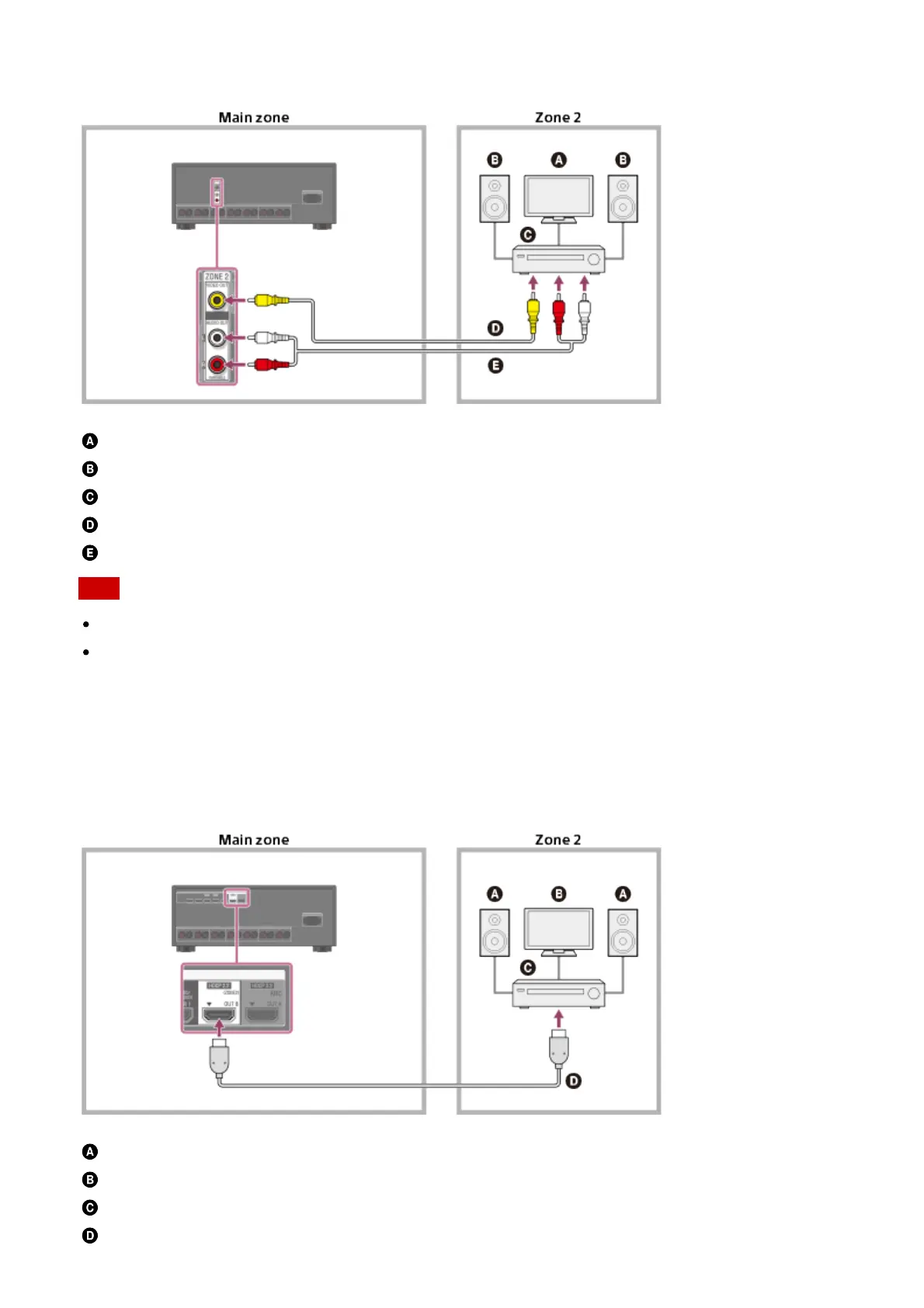 HDMI video/audio input signals, optical/coaxial audio input signals are output to zone 2 using