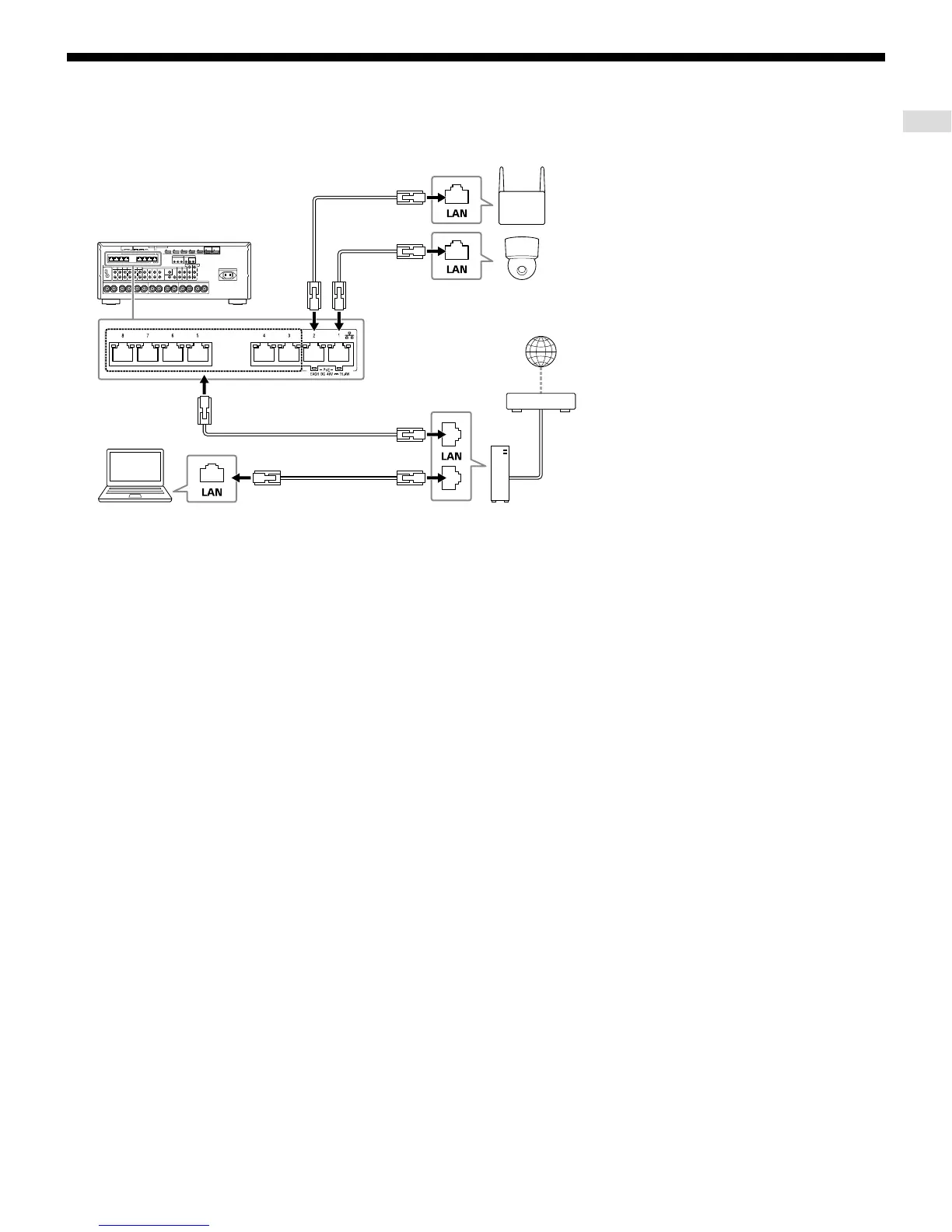 • Connect a router to one of ports 1 to 8 on the receiver using a single LAN cable. Do not connect the