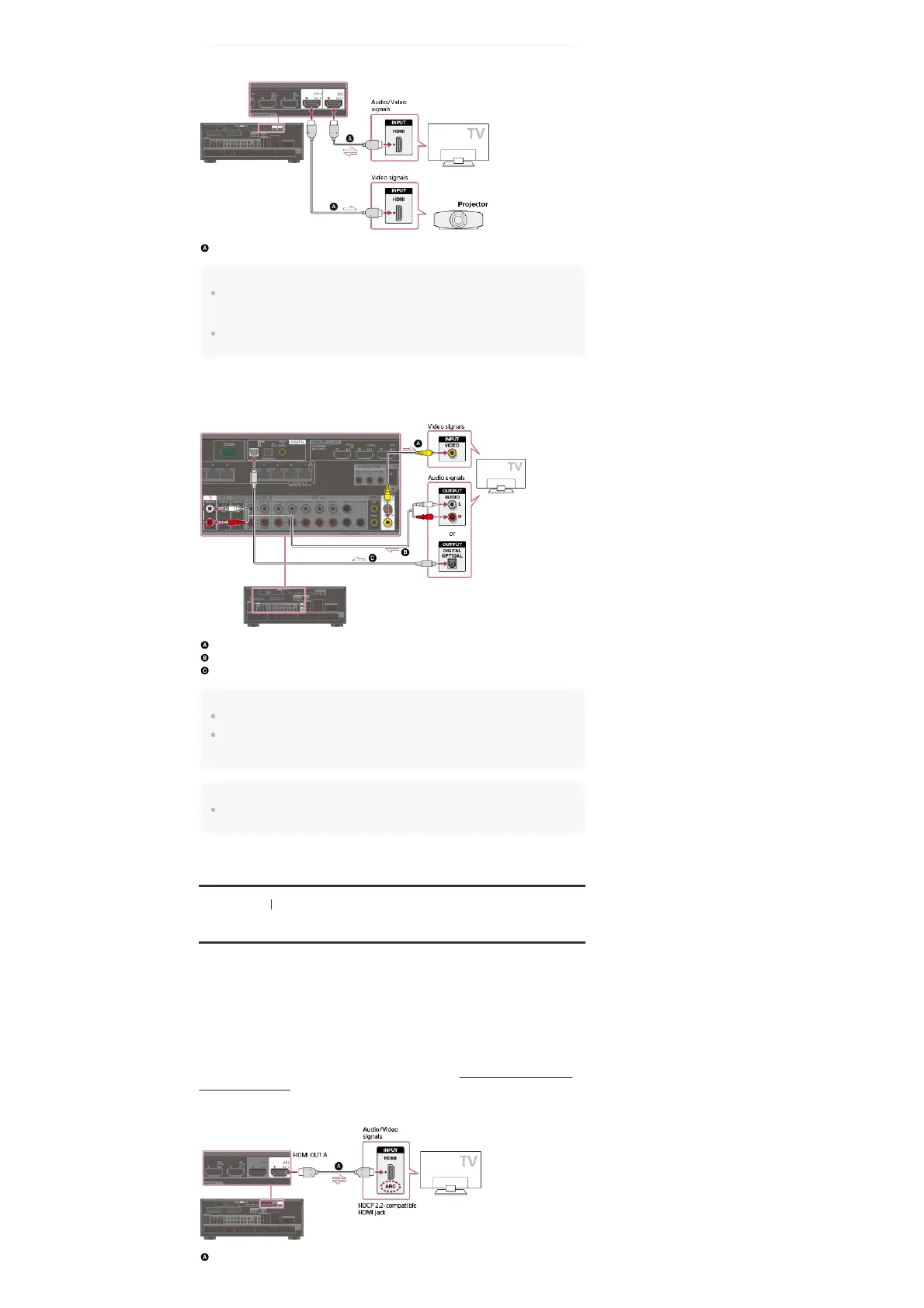 To watch HDCP 2.2 protected content such as 4K content, connect the HDMI jacks to jacks that