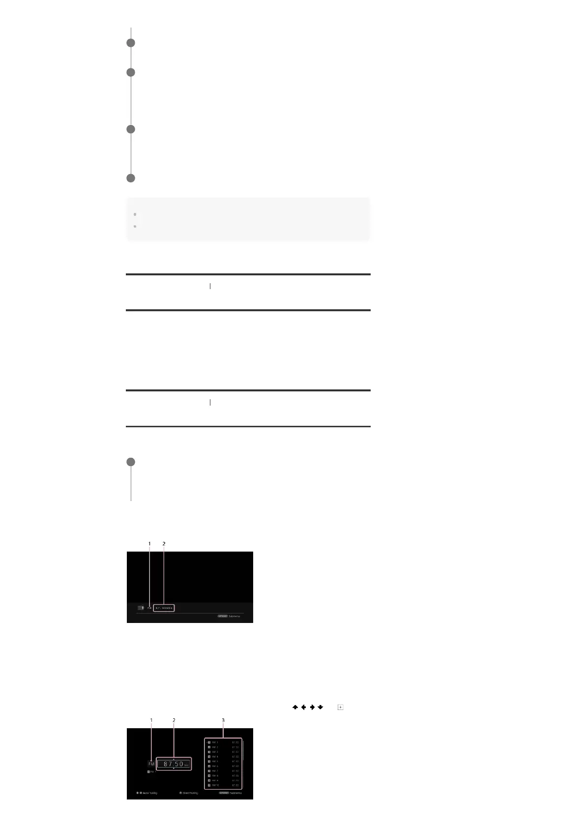 You can tune to a station automatically by pressing TUNING +/-. The receiver stops