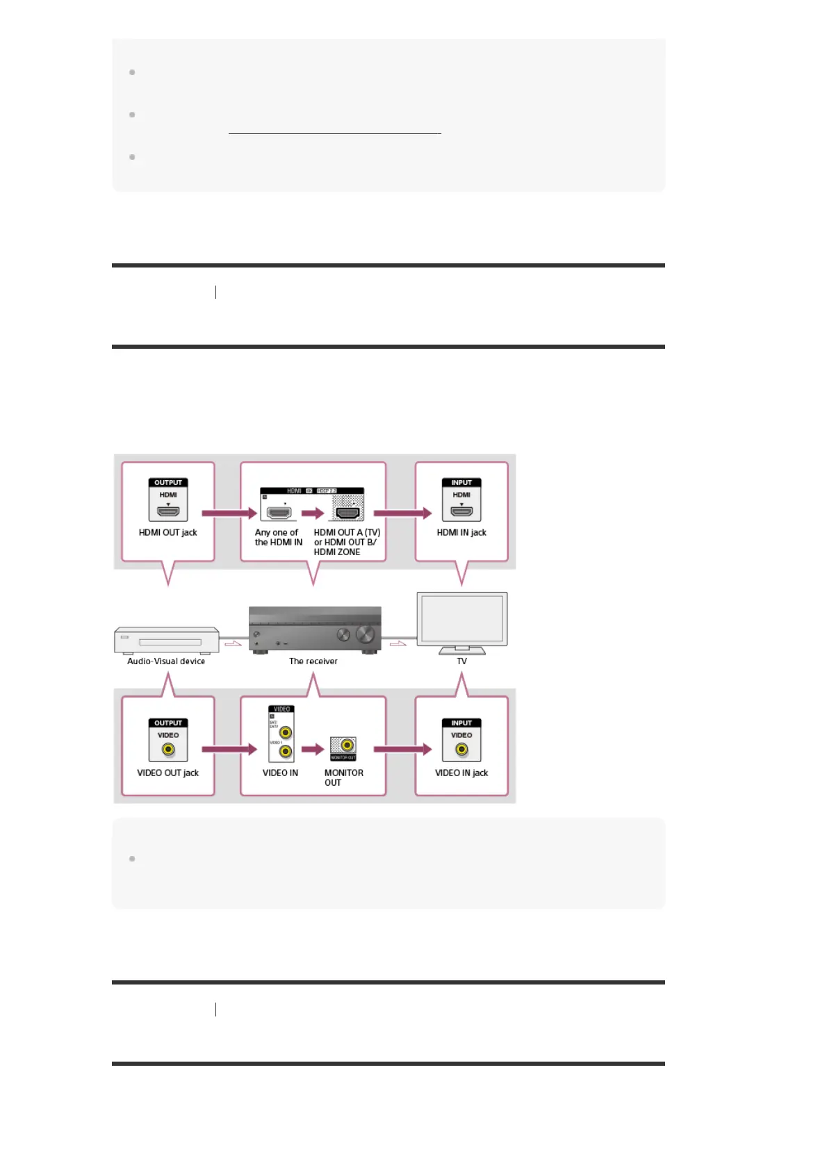 A (TV) or HDMI OUT B/HDMI ZONE jacks only. The analog video signals input from VIDEO IN
