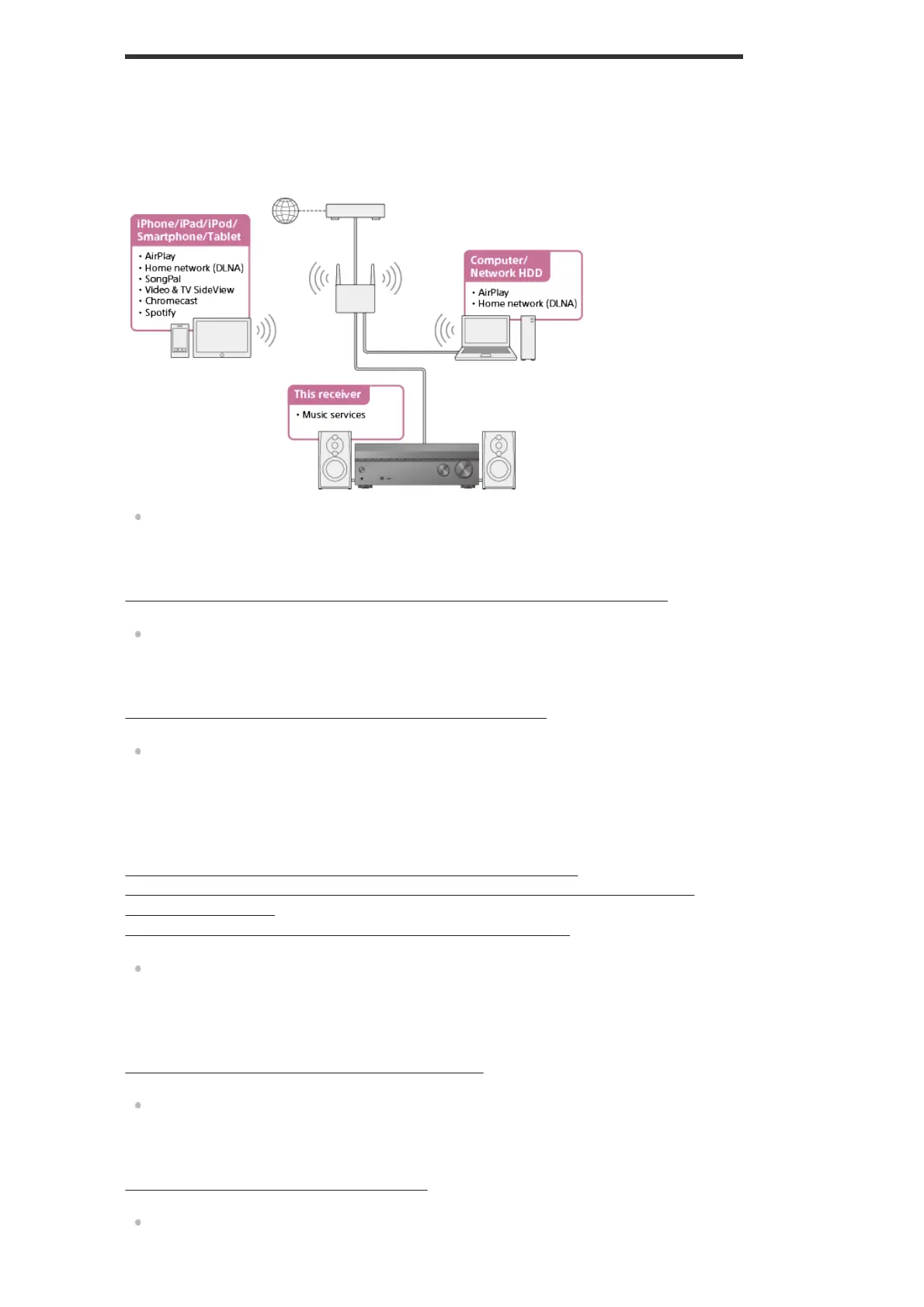 With the receiver connected to the Internet, you can listen to music from a variety of music
