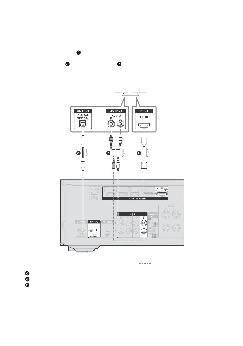 To output TV audio signals to the receiver, connect the receiver and the TV using an optical