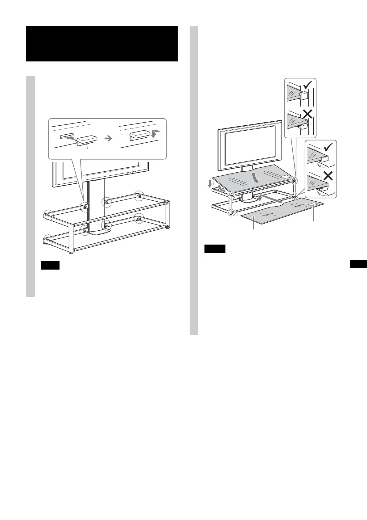 • Fixe a prateleira de vidro ao Suporte de Televisor,