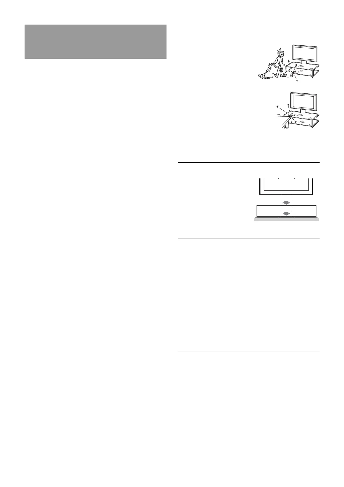 • Install the TV Stand on a solid and flat floor. Do not allow