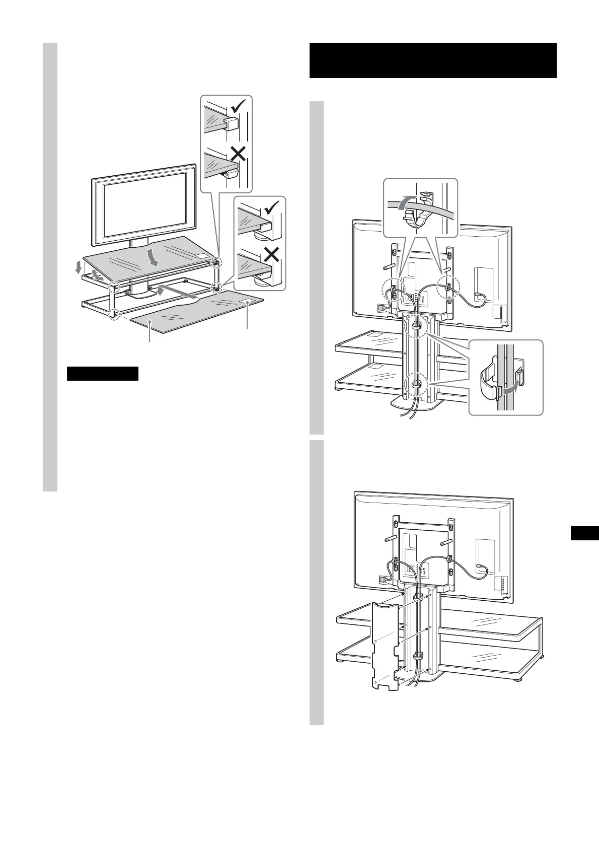 • Aseta lasihyllyt televisiojalustaan siten, että ”varoitustarra”