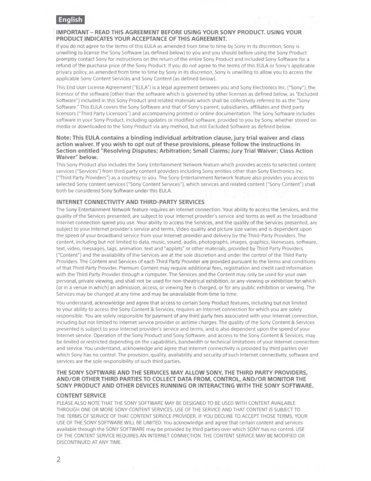 BEFORE USING YOUR SONY PRODUCT. USING YOUR