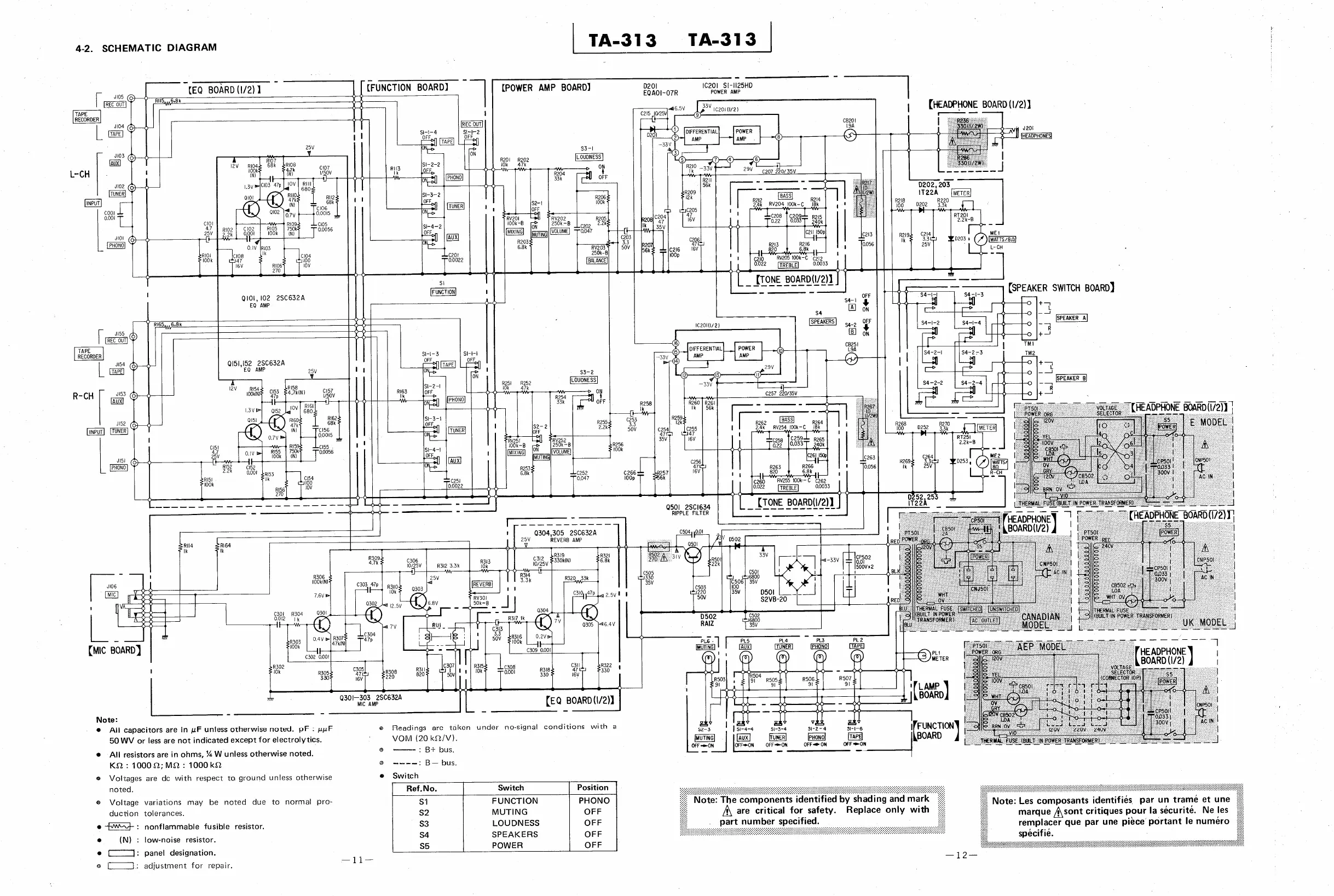 Sony TA-313 - TA-313 Schematic Diagrams and Critical Parts; Overall Schematic Diagram; Critical Component Identification