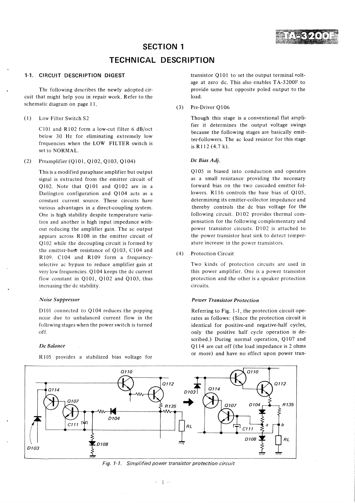 Sony TA-3200F - SECTION 1 TECHNICAL DESCRIPTION; 1-1. CIRCUIT DESCRIPTION DIGEST