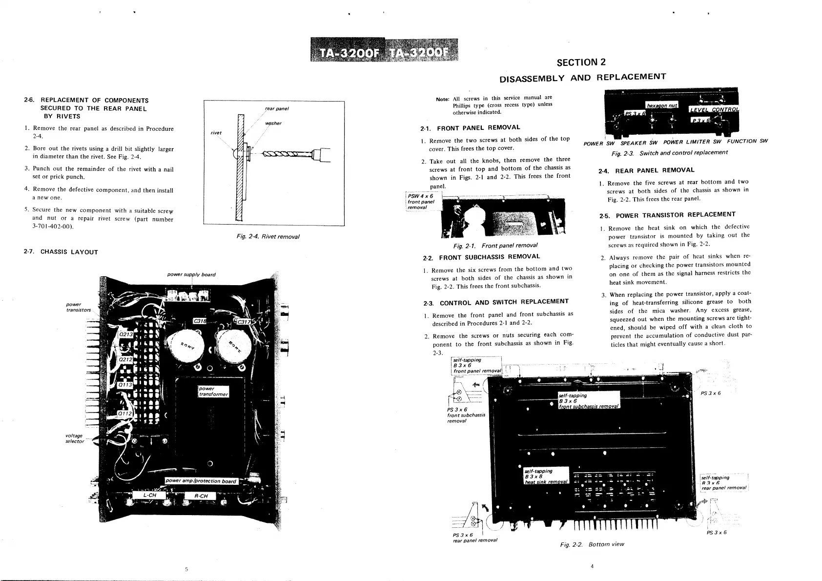 Sony TA-3200F - SECTION 2 DISASSEMBLY AND REPLACEMENT; 2-1. FRONT PANEL REMOVAL; 2-2. FRONT SUBCHASSIS REMOVAL; 2-3. CONTROL AND SWITCH REPLACEMENT