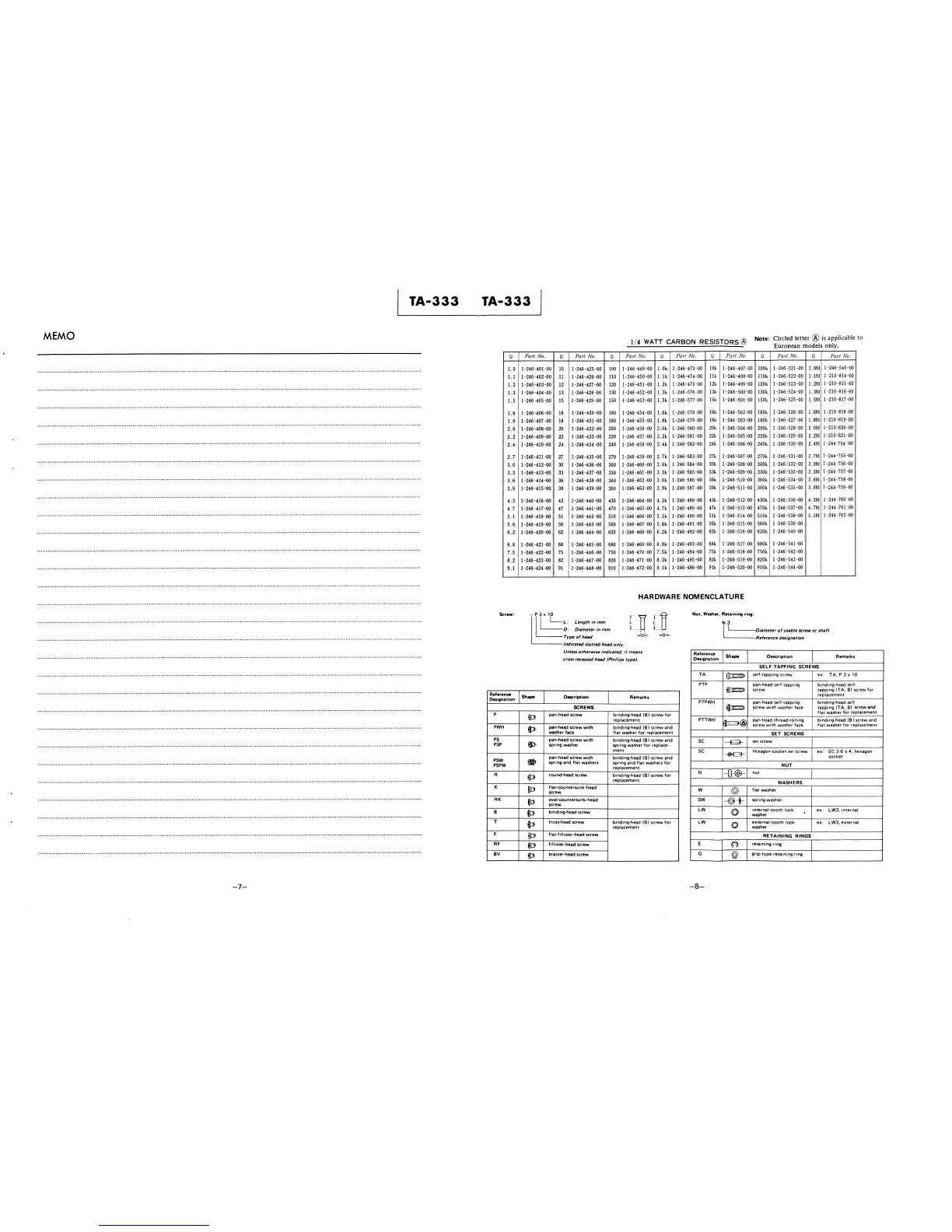 Sony TA-333 - Hardware Nomenclature