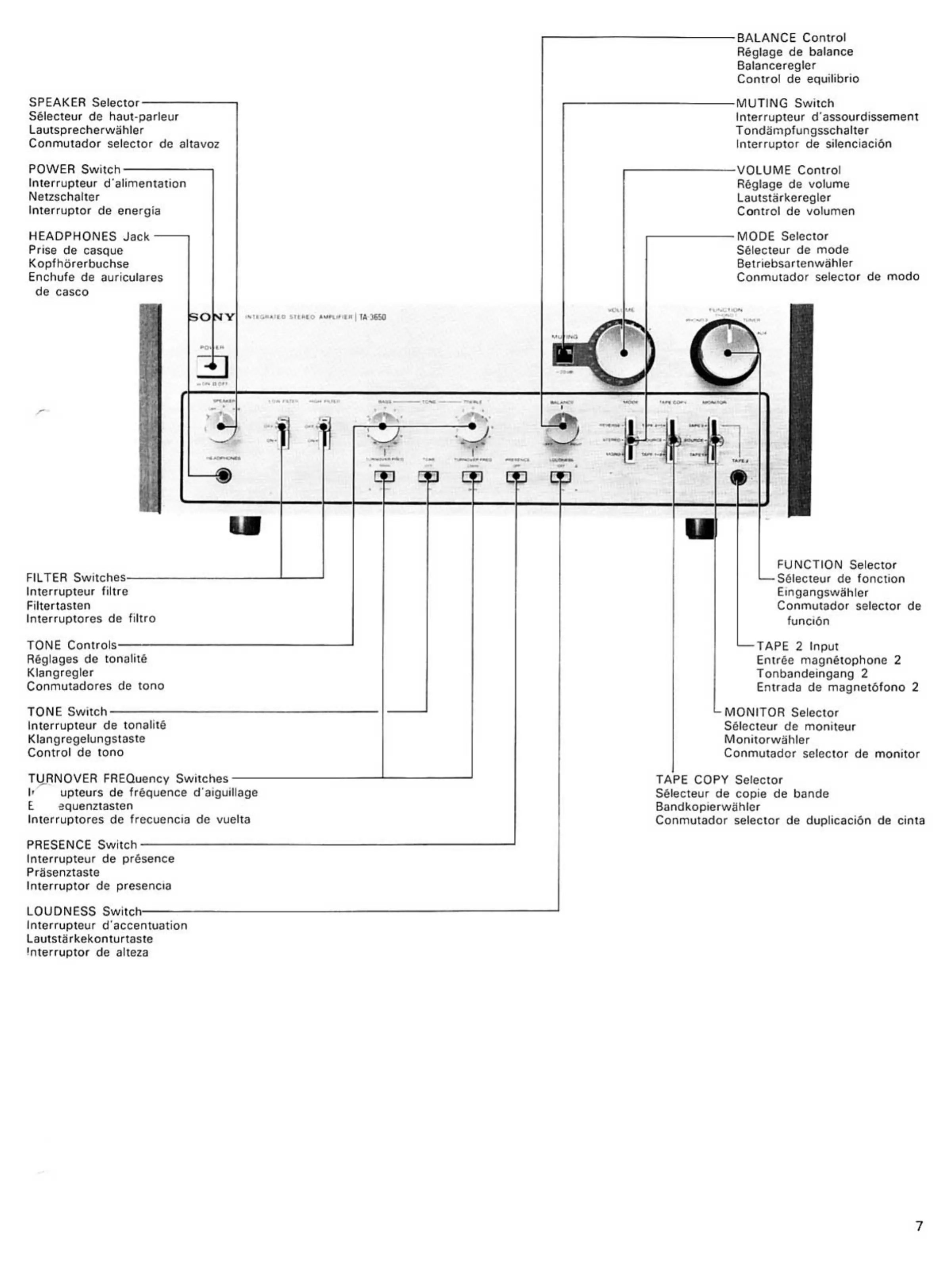 Sony TA-3650 - Front Panel Controls and Operation; Front Panel Layout and Identification