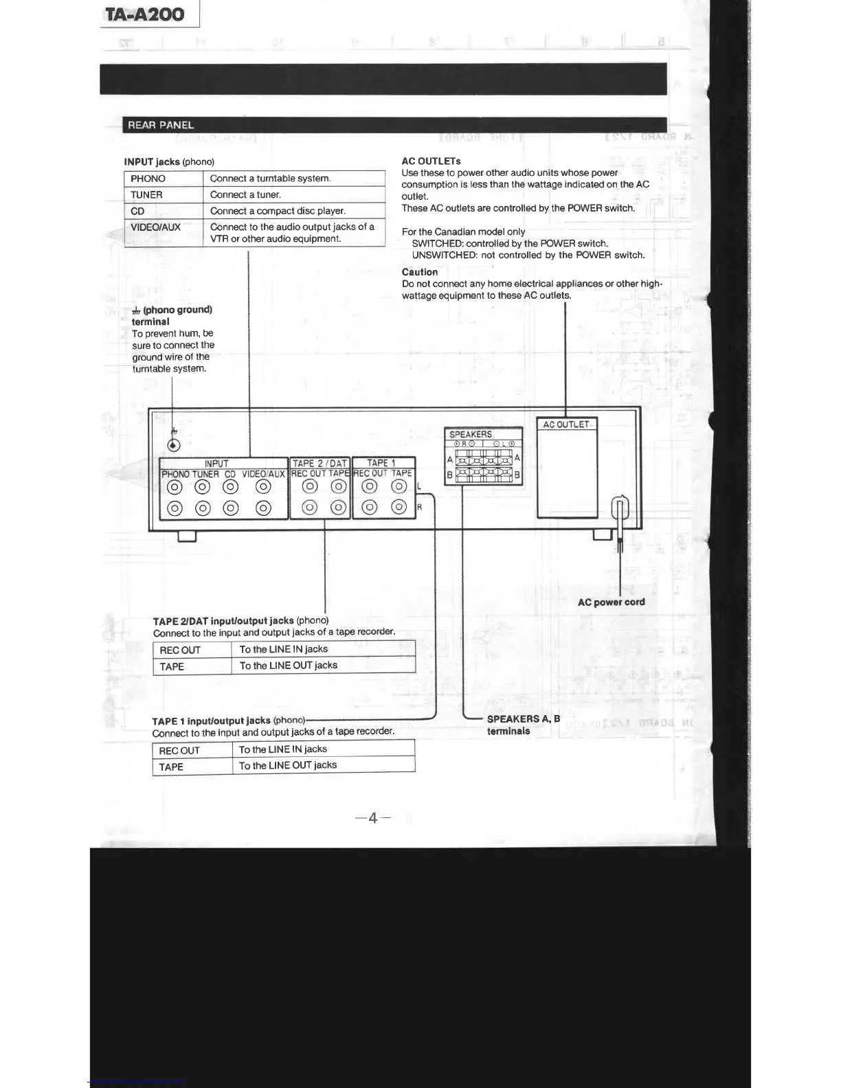 Sony TA-A200 - Rear Panel; AC Outlets