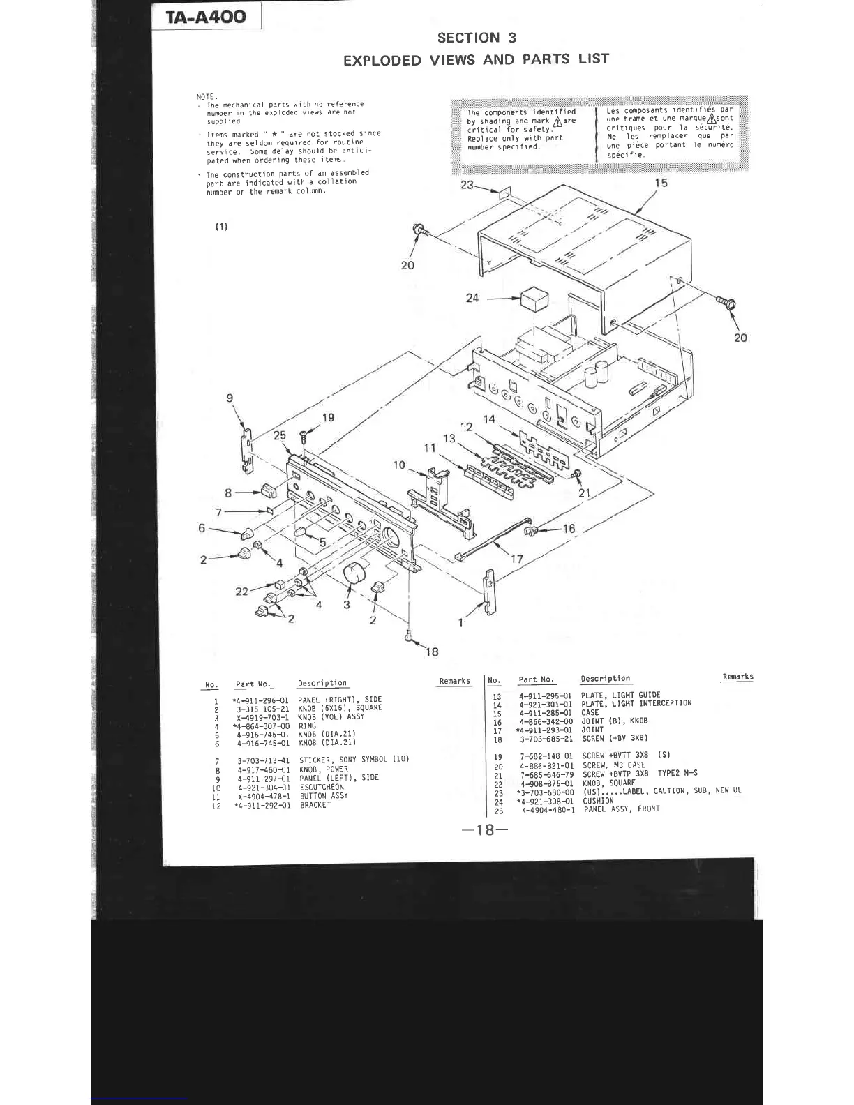 Sony TA-A400 - Exploded Views and Parts List; Exploded Views; Parts List