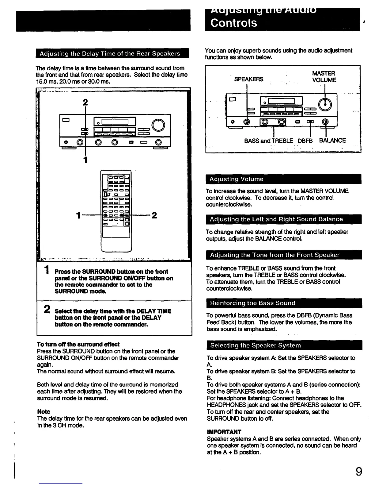 Sony TA-AV521 - Adjusting Audio Controls; Speaker and Tone Adjustments