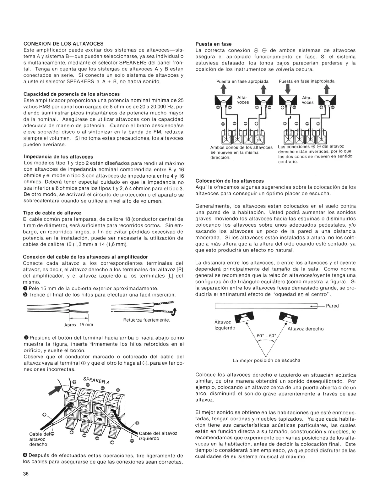 Sony TA-AX2 - CONEXION DE LOS ALTAVOCES; Capacidad de potencia de los altavoces; Impedancia de los altavoces; Tipo de cable de altavoz