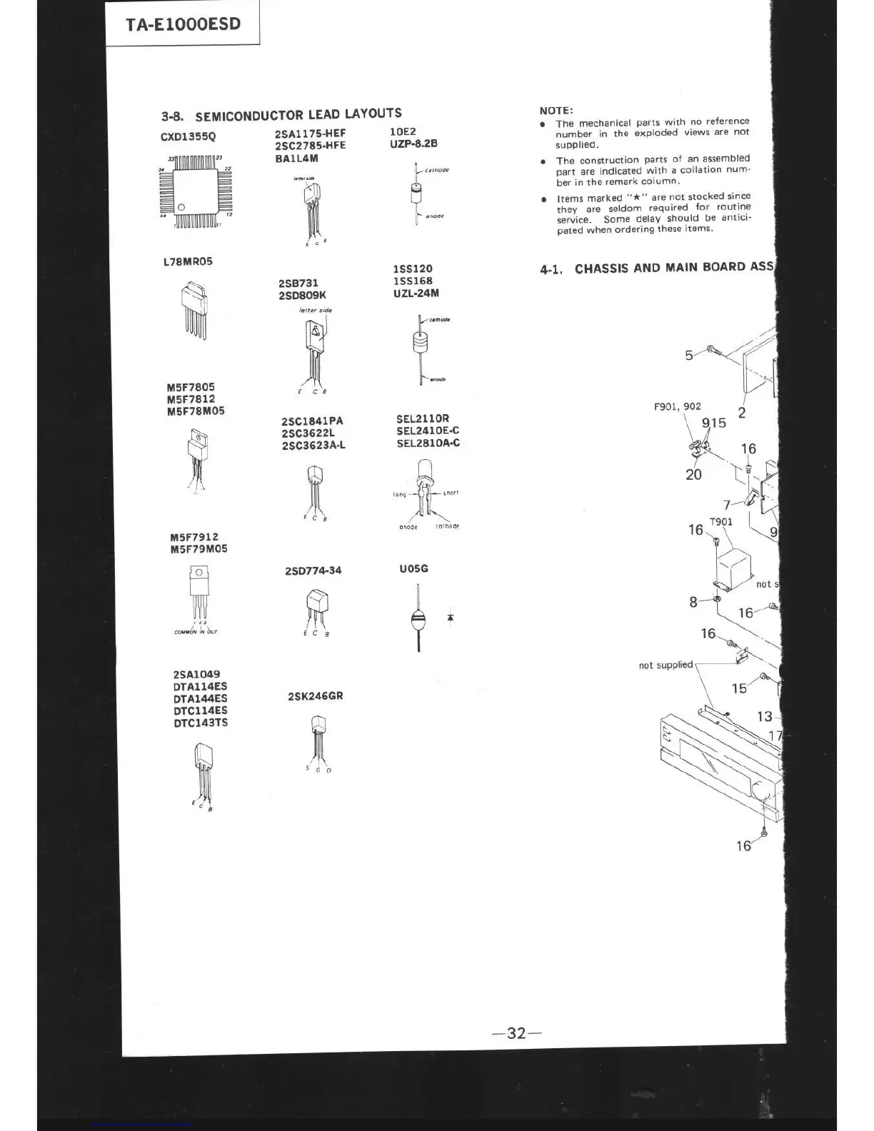 Sony TA-E1000ESD - Semiconductor Lead Layouts; Chassis and Main Board Assembly Exploded View