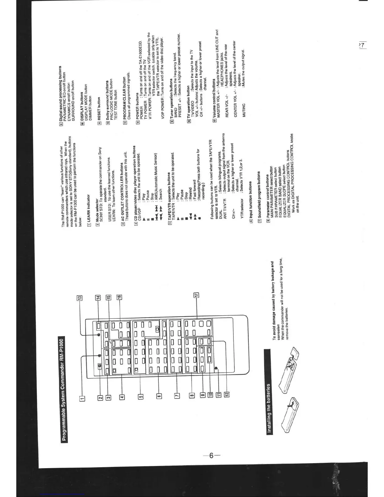Sony TA-E1000ESD - Programmable System Commander; Installing the Batteries