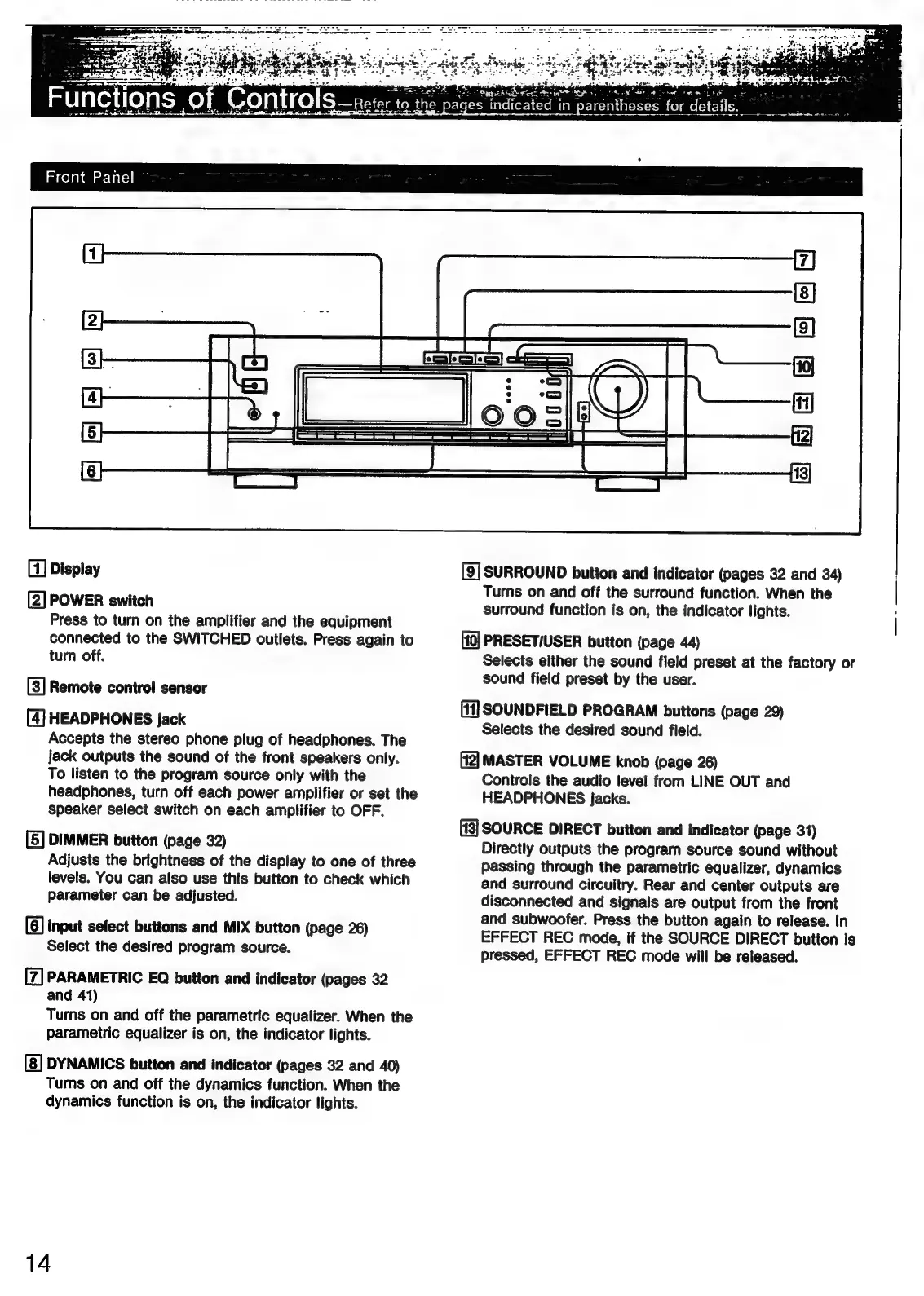 Sony TA-E2000ESD - Controls and Display; Front Panel Controls